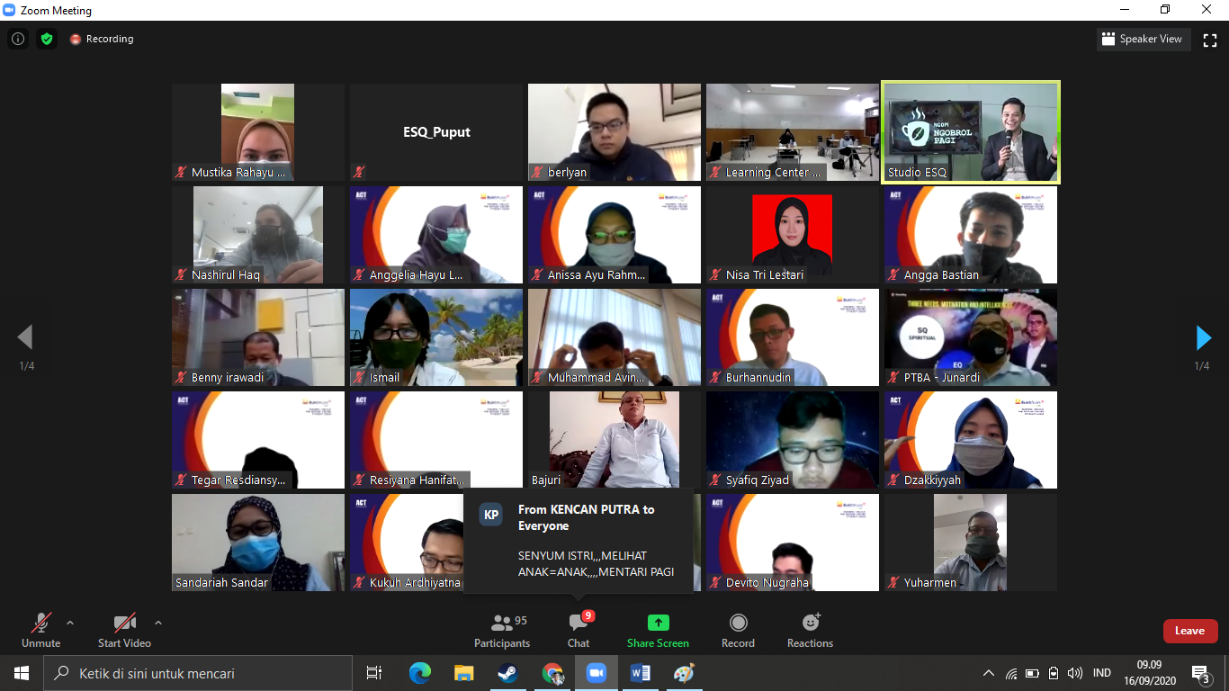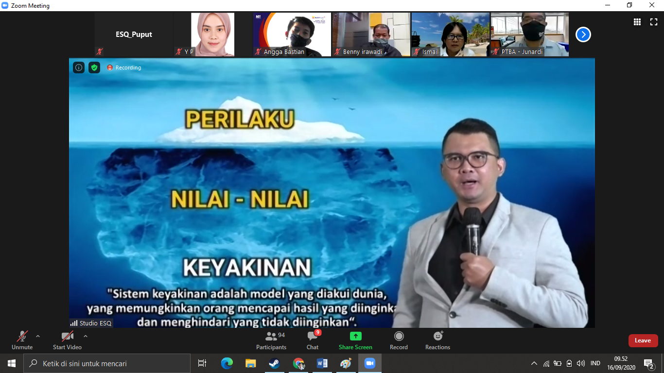 ESQNews.id, JAKARTA – PT Bukit Asam Tbk ikuti Training Unlock the AKHLAK Values selama 3 hari, Selasa-Kamis (15-17/9/2020) melalui zoom meeting. Di awal acara, trainer Rudi menyampaikan sebuah pertanyaan dalam sesi ‘Ngopi’ atau Ngobrol Pagi.
