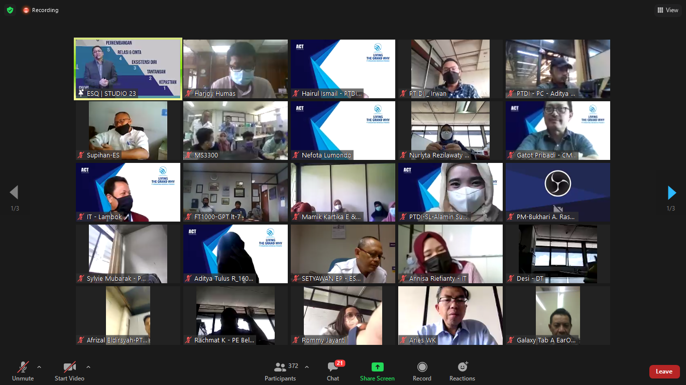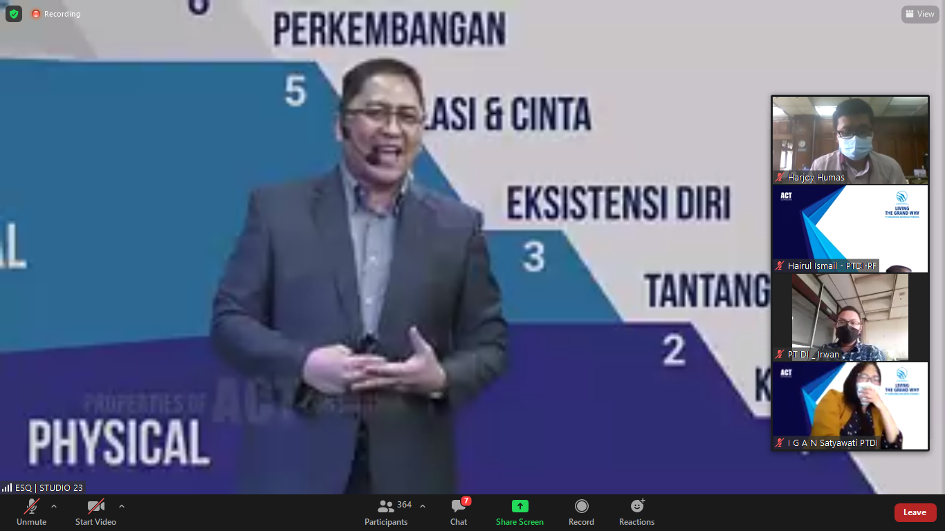 ESQNews.id, JAKARTA - Training Living the Grand Why telah berlangsung di PT Dirgantara Indonesia (PT DI) selama satu hari penuh dari pagi hingga sore pada Selasa (6/4/2021) via Zoom Meeting.