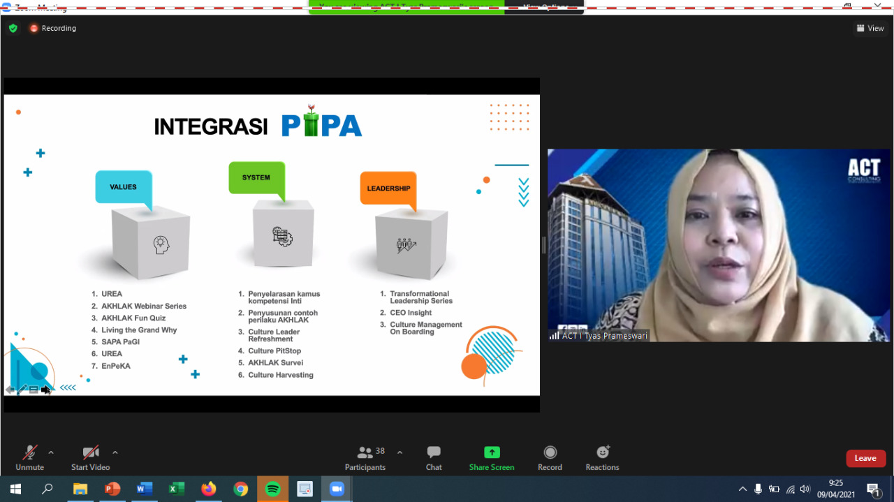 Luki Alamsyah Agustriana (Project Advisor), Tyas Prameswari (Project Manager), Dwitya Agustina (Project Director) beserta Tim ACT Consulting yang hadir pagi ini siap menjadi ‘dokter’ PIHC selama 9 bulan ke depan melalui program AMoNiAK PI Group dan PIPA. Sesuai dengan roadmap budaya di tahun 2021 ini yaitu membangun kesadaran dan pemahaman AKHLAK untuk mendorong kolaborasi dan menciptakan kemitraan yang produktif dan harmonis melalui program aktivasi AKHLAK yang terintegritas, terukur, dan terencana.