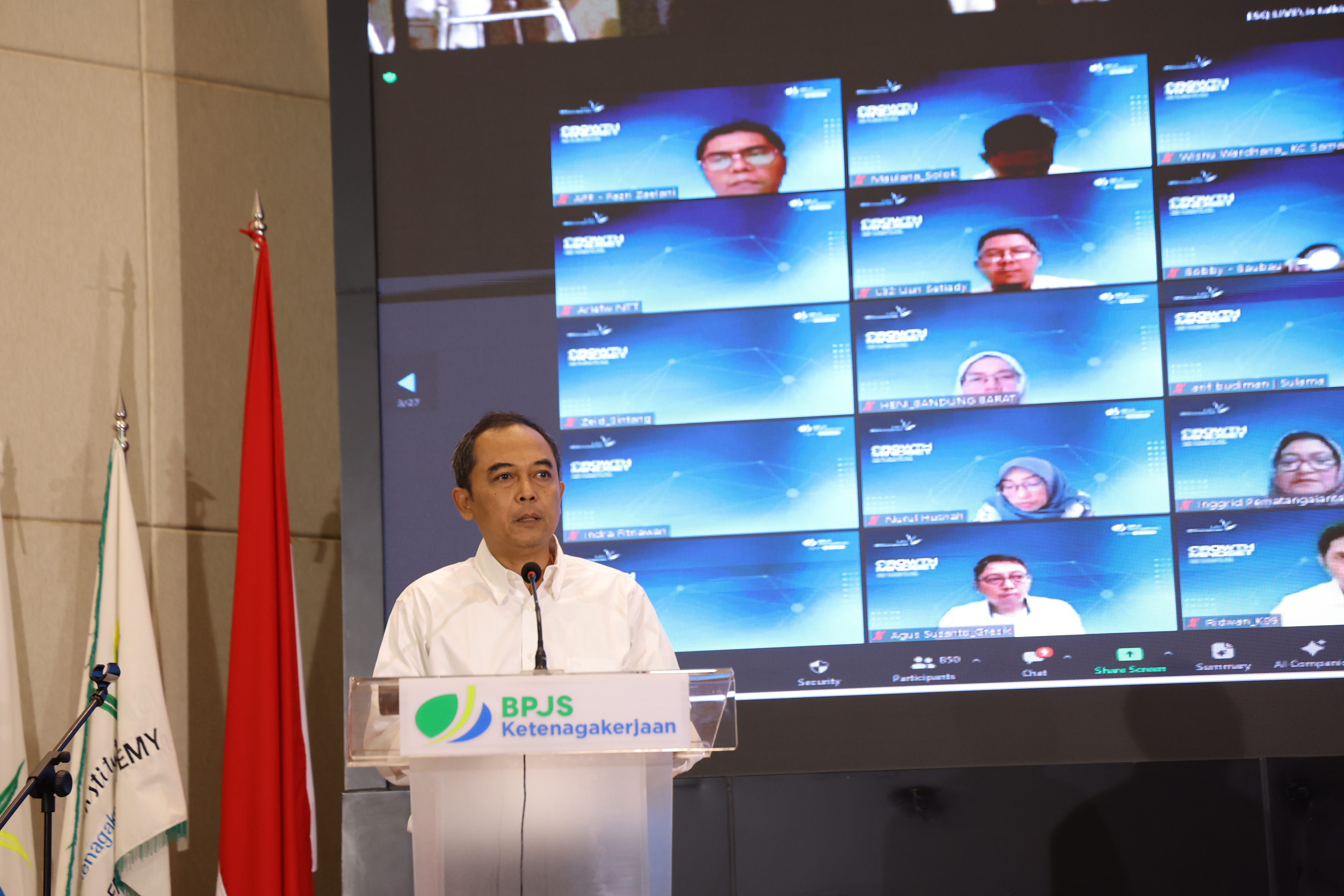 Dalam kesempatannya juga, hadir Dirut BPJS Ketenagakerjaan Anggoro Eko Cahyo yang menyapa lewat zoom meeting karena saat ini sedang berada di Singapura.