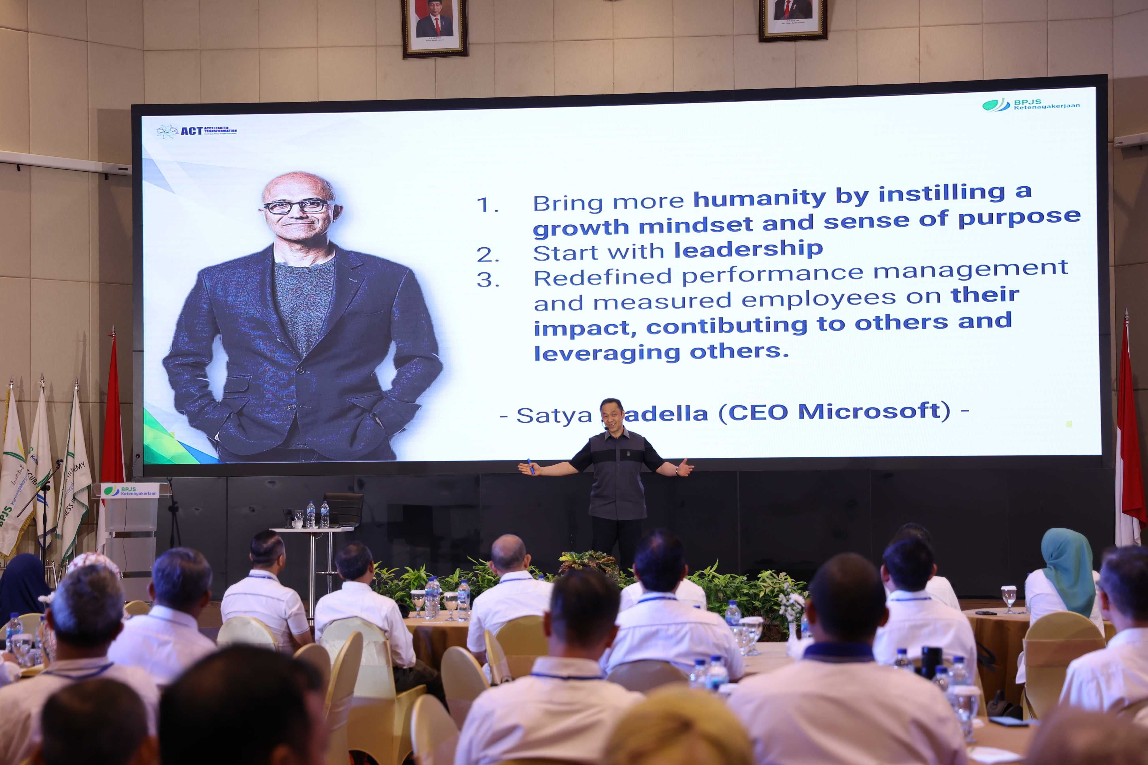Training yang dilaksanakan oleh BPJS Ketenagakerjaan berkolaborasi dengan ACT Consulting International untuk memberikan pemahaman dan pelatihan untuk menanamkan growth mindset dalam tiap pegawai yang ada di BPJS Ketenagakerjaan.