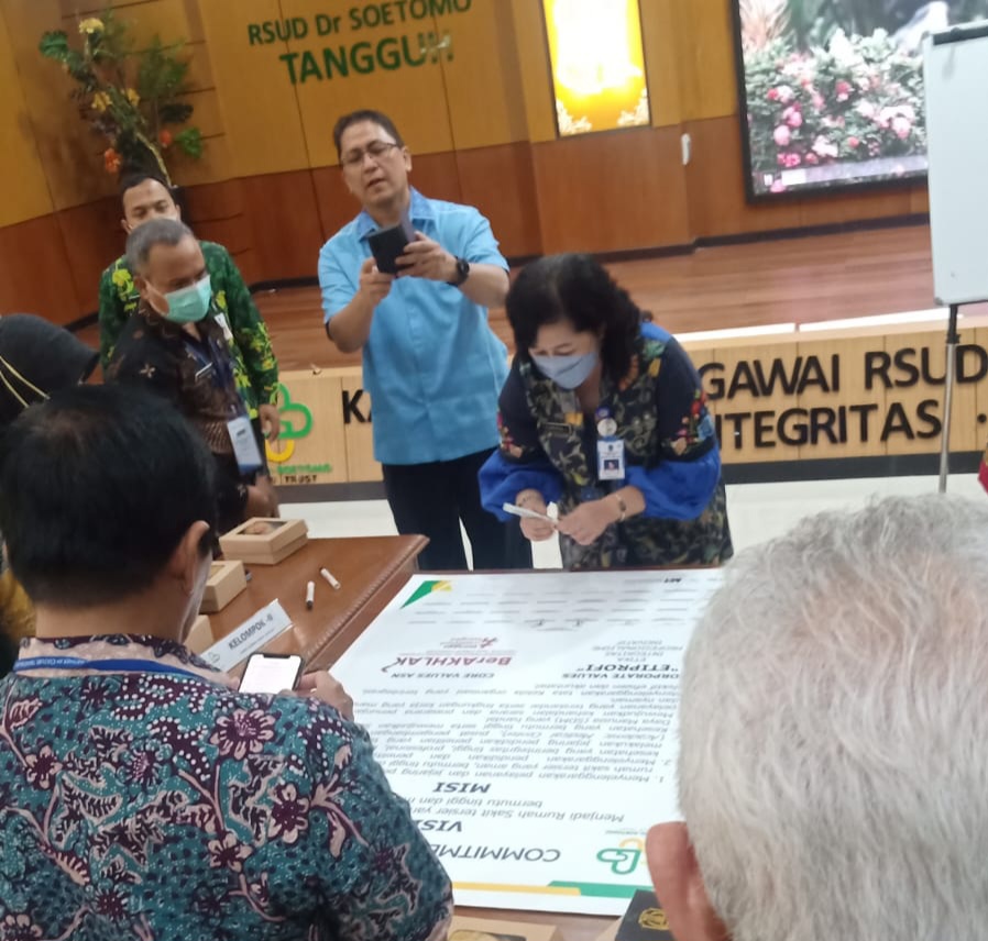 Sebelumnya, RSUD Dr. Soetomo telah melakukan pengukuran indeks kesehatan budaya organisasi dan mendapat potret kondisi budaya kerja dan memulai aktivasi budaya kerja dari para top leader yang akan membuat grand design, roadmap implementasi budaya organisasi.