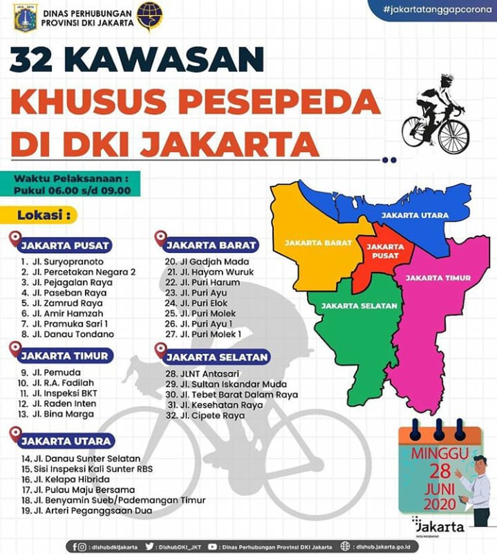 “Dilihat dari antusiasnya masyarakat yang akan mengikuti kegiatan berolahraga. Maka kami melakukan distribusi pelaksanaan kegiatan olahraga ini ke 5 wilayah Kota Provinsi DKI Jakarta. Berlaku mulai pukul 06.00 s/d 09.00 WIB,” papar Syafrin Liputo.