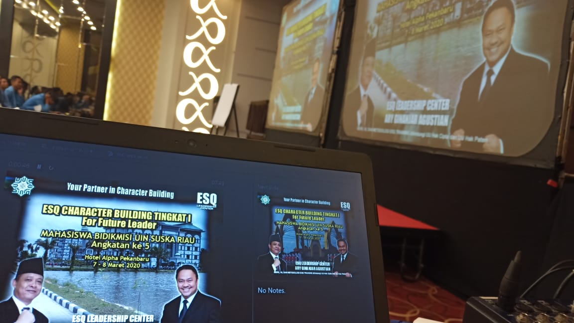 Suasana Training ESQ Character Building Tingkat I untuk mahasiswa bidikmisi UIN Suska Riau (7-8/3/2020).