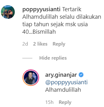 Tertarik puasa Syawal 6 hari? Mayoritas netizen berkomentar “InsyaAllah” di kolom chat instagram milik Ary Ginanjar, adapula yang memberi tanggapan seperti ini: