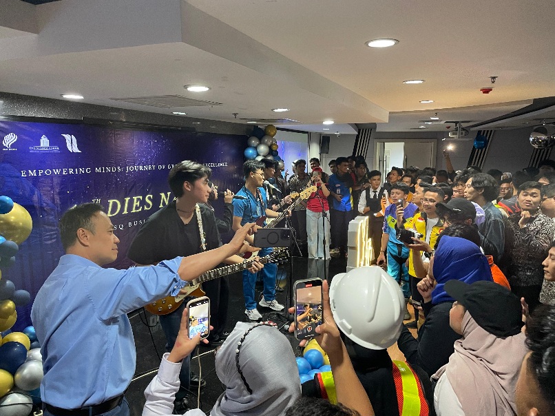 Moment yang digelar setiap tahunnya itu, kali ini mengusung tema "Empowering Minds: Journey of Growth and Excellence" dengan dekorasi yang super duper elegan, eye catching, classy (perpaduan warna dengan nuansa biru, gold, abu-abu). Di fasilitasi juga photobox secara gratis.
