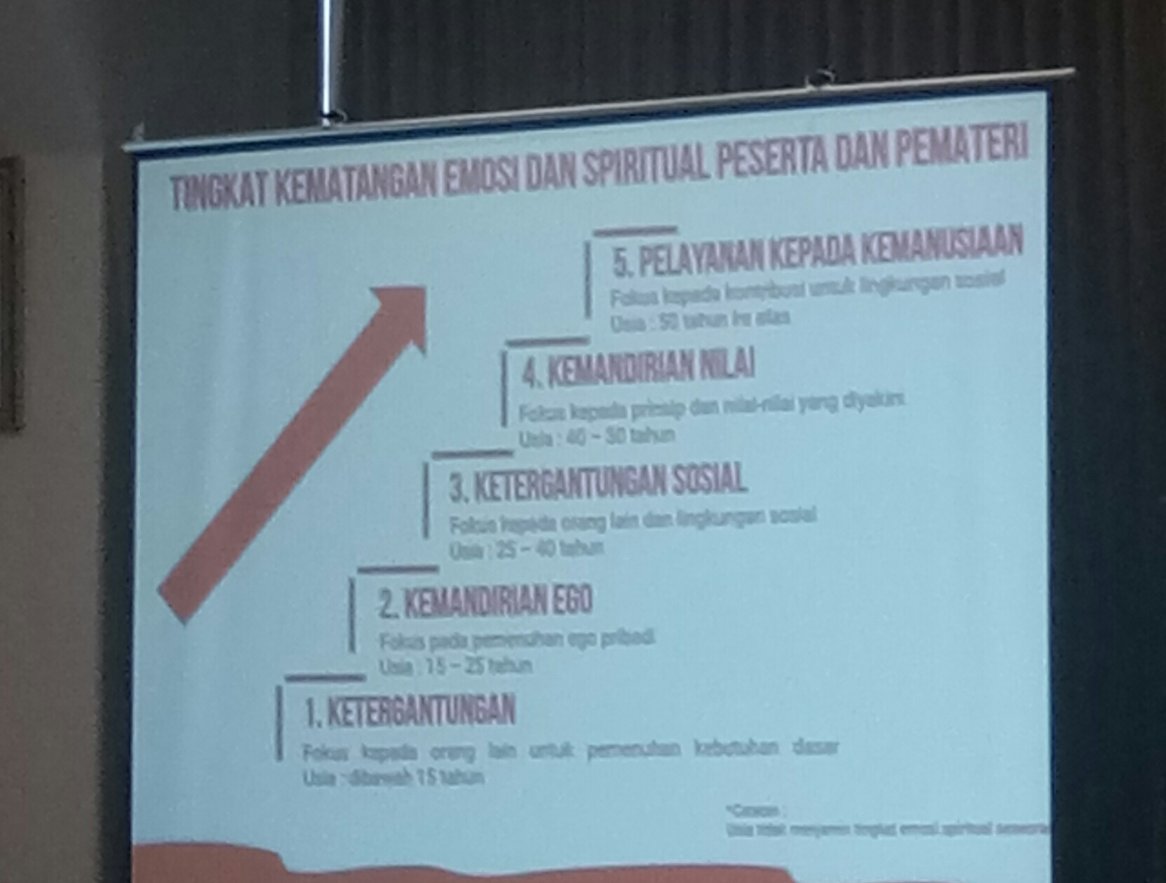 Kemudian dilanjutkan dengan pembekalan materi menurut tingkat kematangan emosi dan spiritual, baik bagi peserta maupun pemateri: