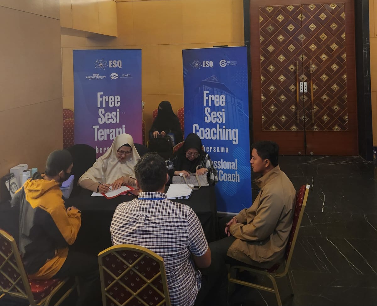 ESQNews.id, JAKARTA - Asosiasi ESQ 3.0 Coach (ASESCO) dan Ikatan Hipnoterapist & NLPers ESQ (IHoPE) hadir dan turut serta memeriahkan Training ESQ Executive dengan membuka booth Rumah Coaching dan Hipnoterapy bagi para peserta training secara gratis dalam waktu 3 hari sejak 25 - 27 agustus 2023.
