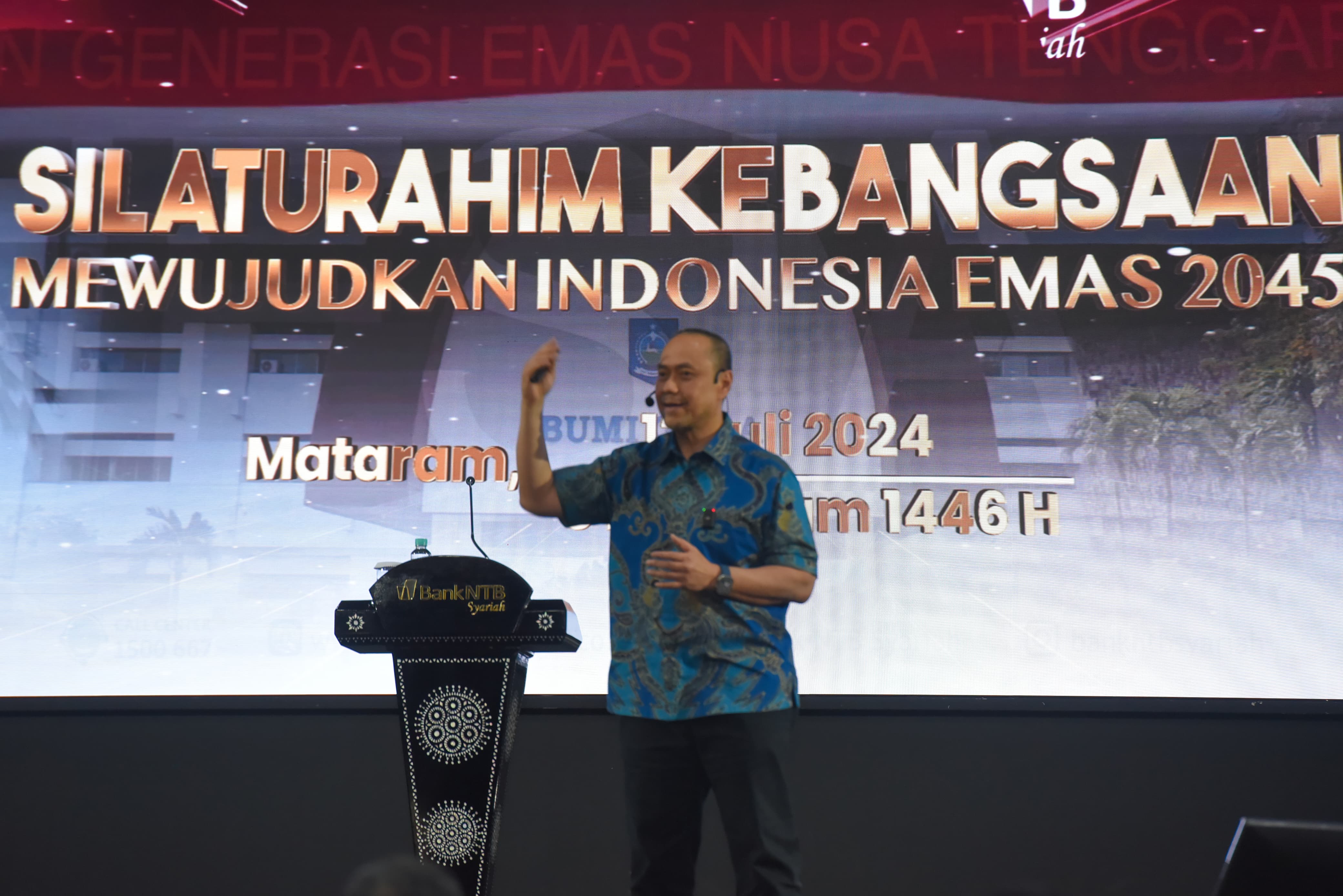 Kemudian, kami sebagai institusi perbankan syariah pastinya mempunyai tanggungjawab selain sebagai lembaga bisnis kami juga punya tanggungjawab untuk membangun sosial ke masyarakat yang lebih beradab. Untuk itu, kami Bank NTB Syariah tidak ragu-ragu memberikan komitmen untuk mengajak seluruh lapisan masyarakat berkontribusi, mari bantu kami mewujudkan Indonesia Emas 2045," ajaknya.