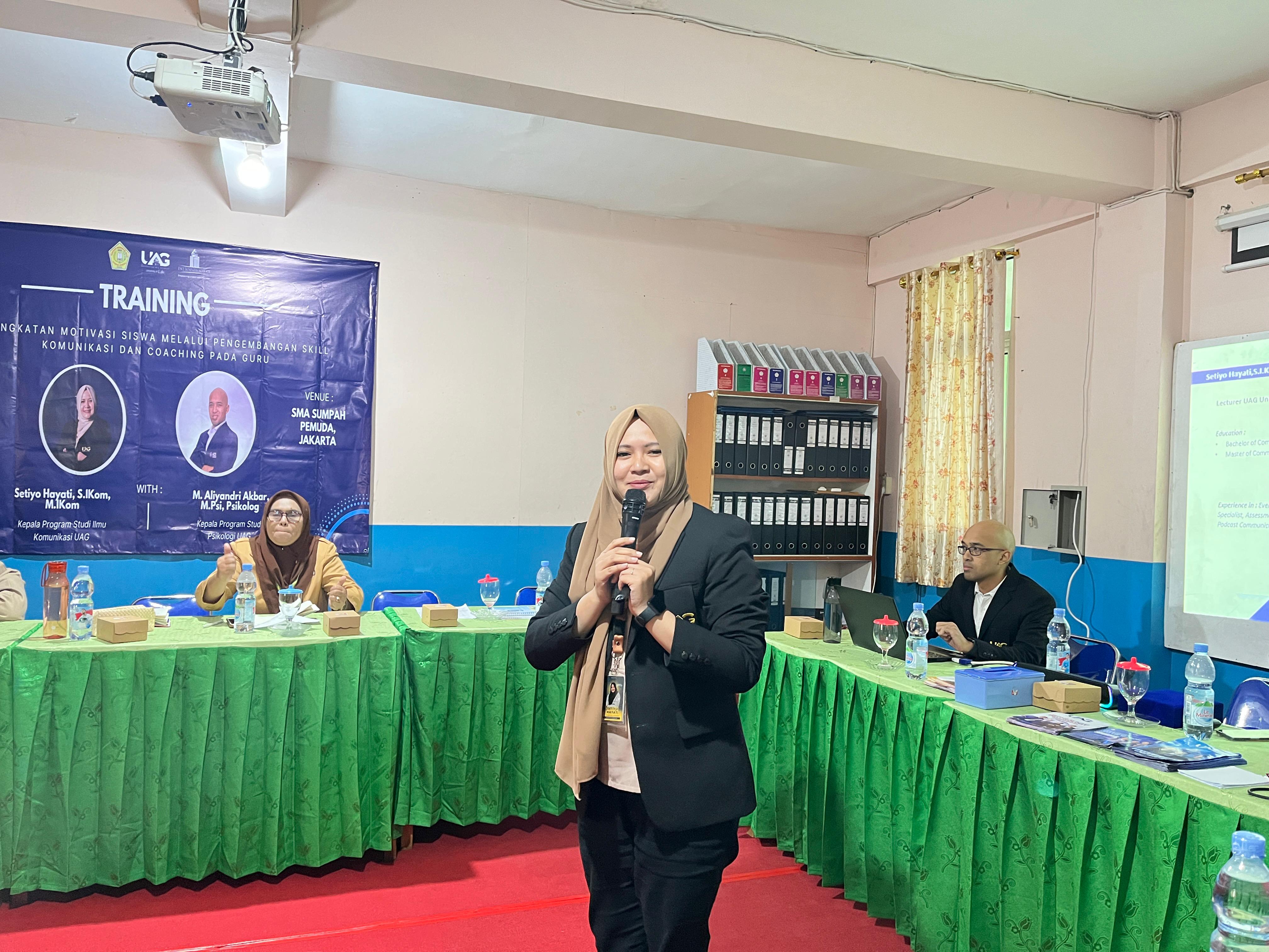 Pelatihan yang diikuti oleh 21 peserta ini menghadirkan dua coach sekaligus trainer inspiratif, yaitu Coach M. Aliyandri Akbar, M.Psi., Psikolog dan Coach Setiyo Hayati, S.I.Kom., M.I.Kom., yang membekali guru-guru dari SMA Sumpah Pemuda dengan keterampilan komunikasi berbasis coaching dan pemahaman mendalam tentang growth mindset.