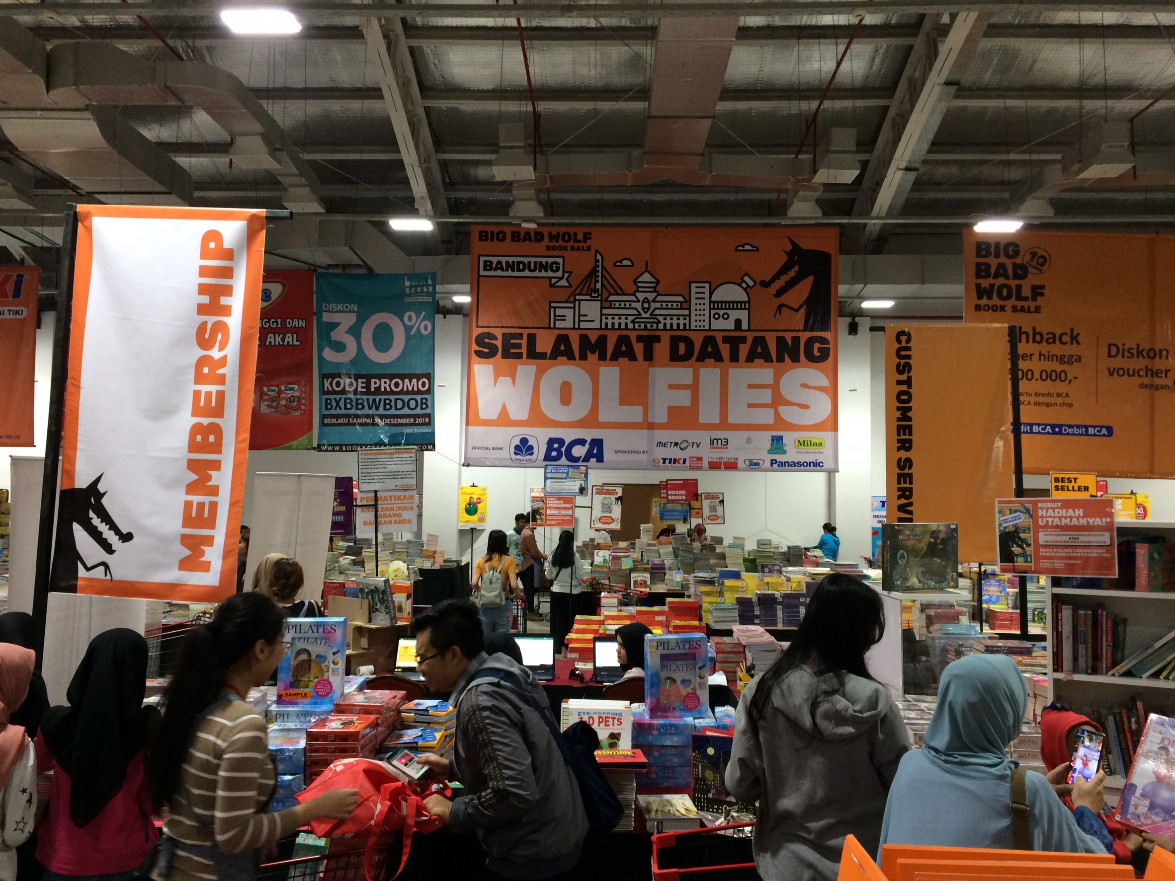 ESQNews.id, PADALARANG, JAWA BARAT - Bazar buku terbesar di Indonesia “Big Bad Wolf” (BBW) 2019 kembali digelar. Setelah diselenggarakan di ICE BSD Tangerang pada Maret lalu, kali ini bazar buku yang di klaim menjadi agenda tahunan bazar buku terbesar di dunia ini hadir di kota Bandung, tepatnya di Hotel Mason Pine, Padalarang, Kabupaten Bandung Barat.