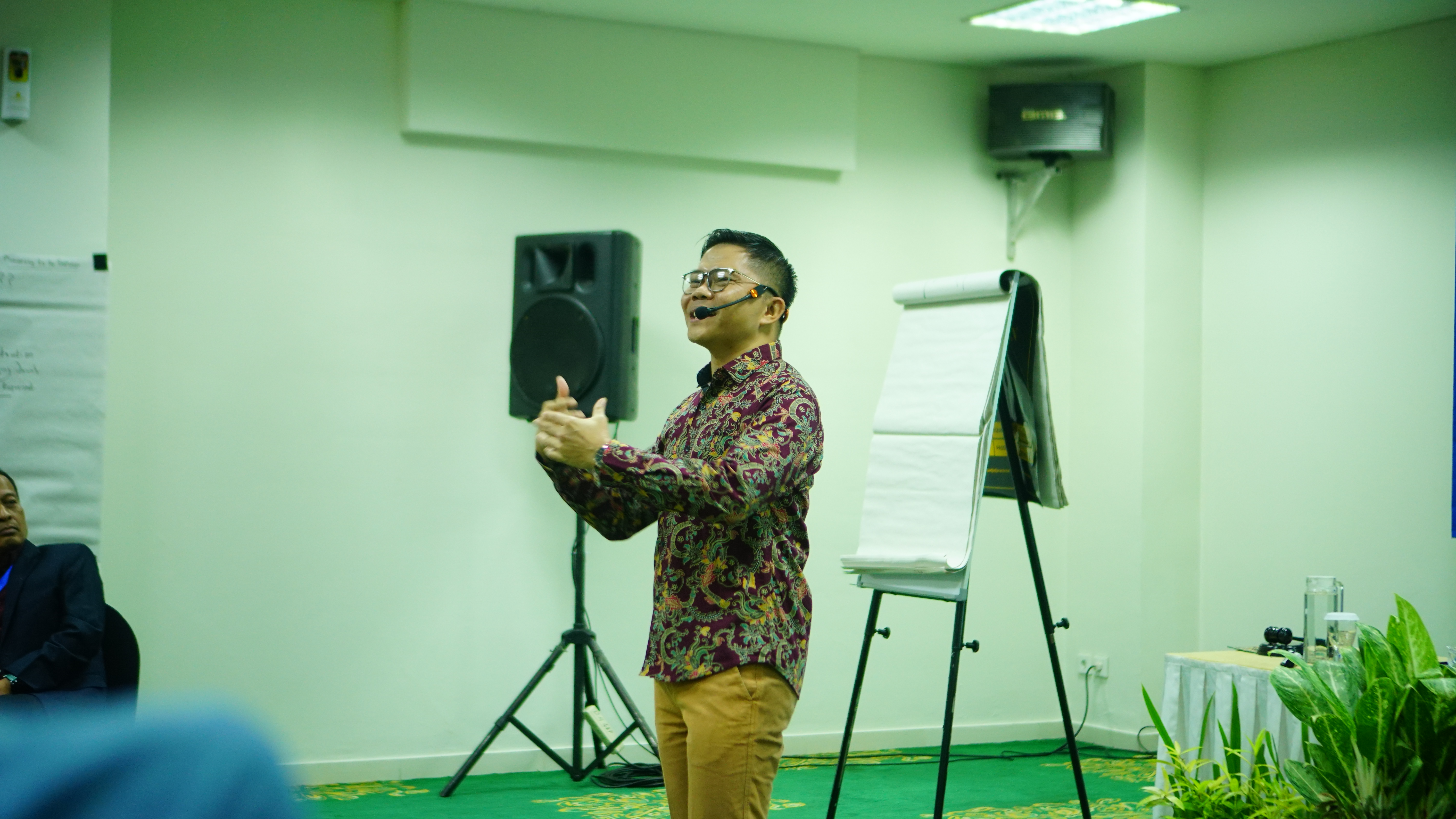 "Buah nangka, buah pepaya. Dihidangkan di atas piring. Selamat datang bapak dan ibu yang berbahagia. Di dalam training sertifikasi public speaking yaaa," ucap Rendy mengawalinya dengan pantun.
