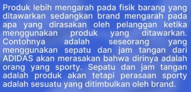 >> Produk Bersifat Fisik  dan Brand Bersifat Emosi