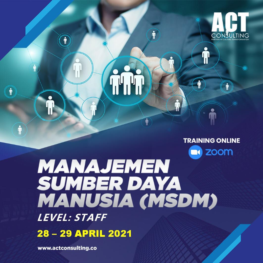 Maka dari itu, ACT Consulting akan menyelenggarakan secara pelatihan berbasis kompetensi bidang MSDM untuk Skema STAF MSDM atau Human Resources Management Staff dalam TRAINING ESQ MSDM LEVEL STAFF pada Rabu dan Kamis (28–29/4/2021) pukul 08.00 – Selesai, melalui Zoom Online, dengan durasi 2 (dua) hari pelatihan dan 1 (satu) hari ujian sertifikasi.