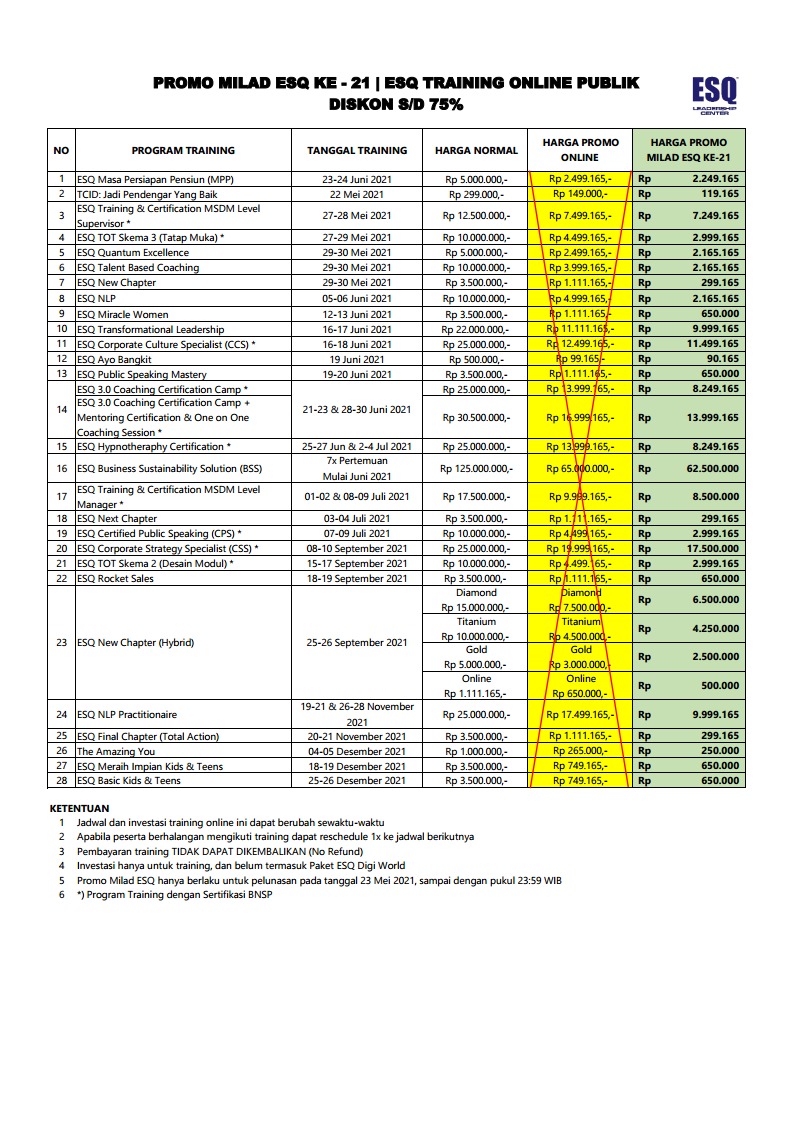 Dapatkan Promo Spesial Milad ESQ ke-21th (terbatas sampai 23 Mei 2021)