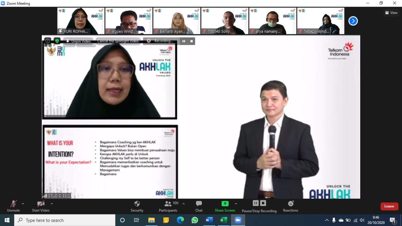 Pada Rabu (21/10/2020) dilaksanakan training Unlock The Akhlak Values Batch 4 di Telkom yang diikuti oleh 90 change agent Telkom.