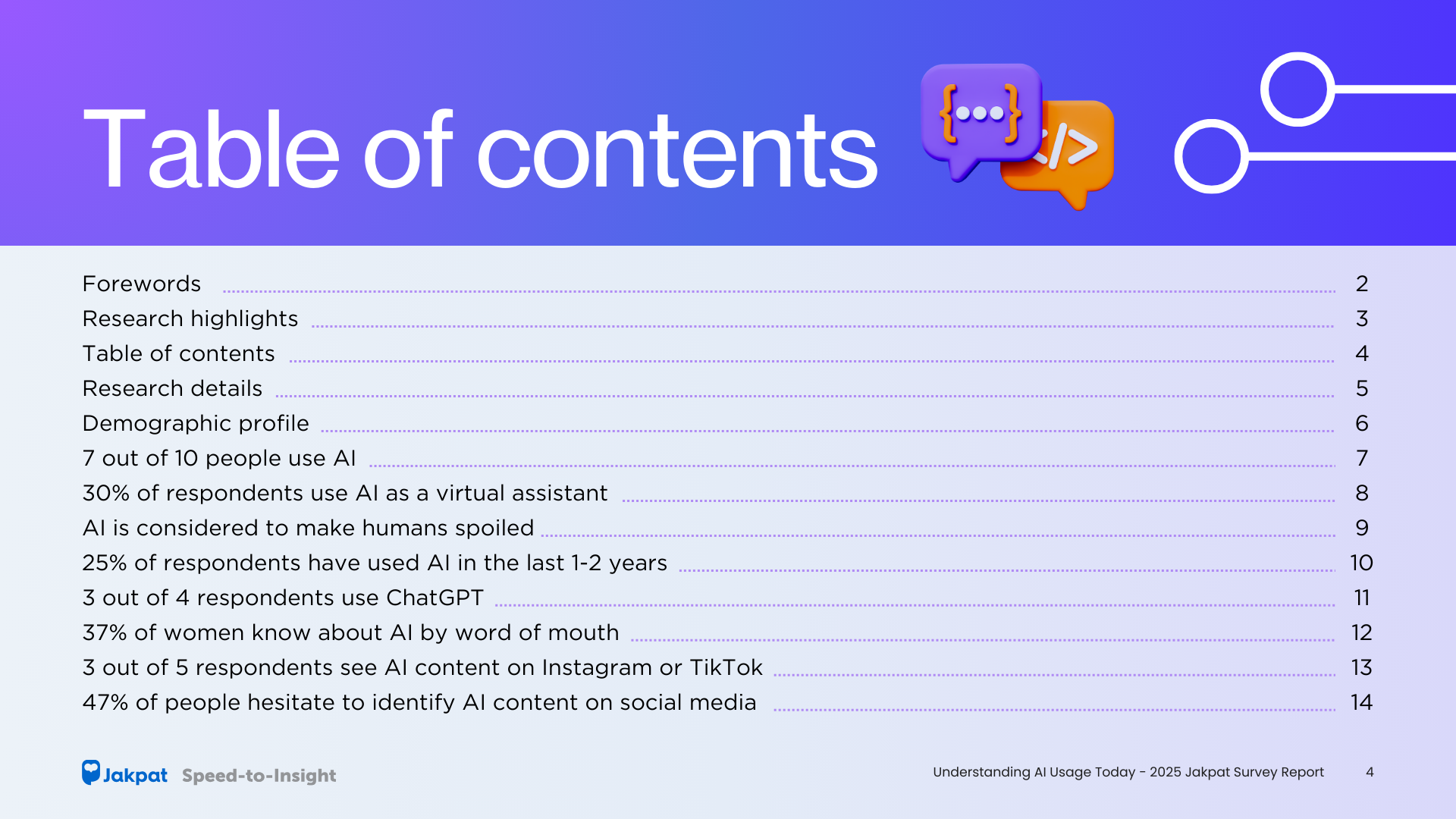 Jakpat melakukan survei untuk mengetahui tren AI pada tahun 2025. Laporan yang melibatkan 1423 responden ini juga memaparkan pendapat responden tentang penggunaan AI, baik secara profesional maupun sehari-hari, serta respons terhadap konten AI di media sosial.