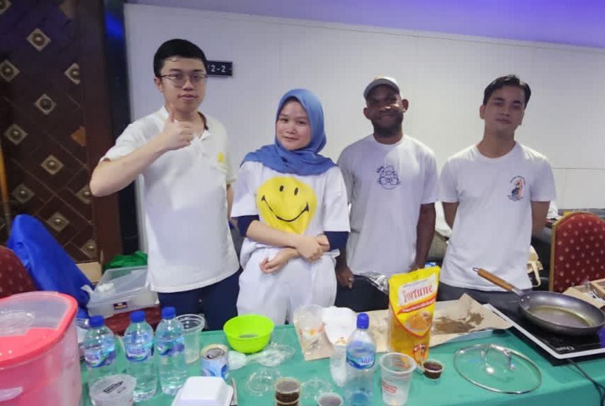 Ada mahasiswa bernama Faisal bersama tim yang menjual produk Pempek khas Palembang (Pempek Delight) dan es buah mumer (murah meriah).