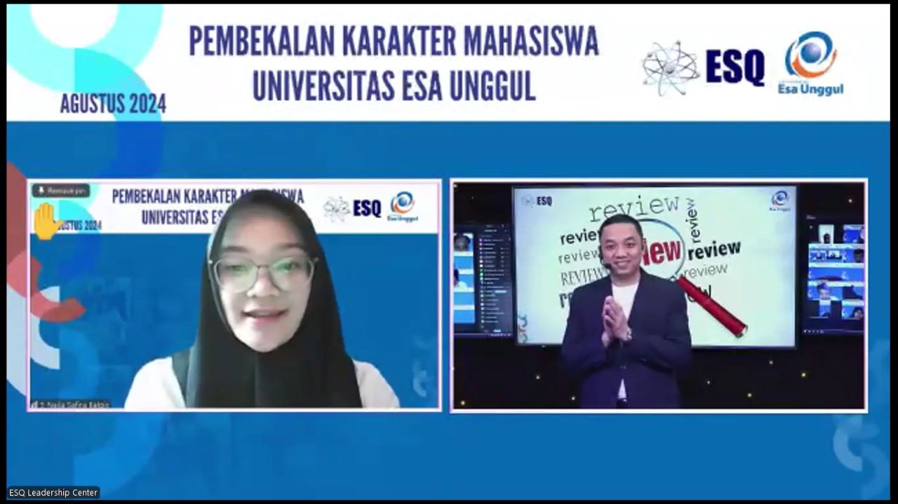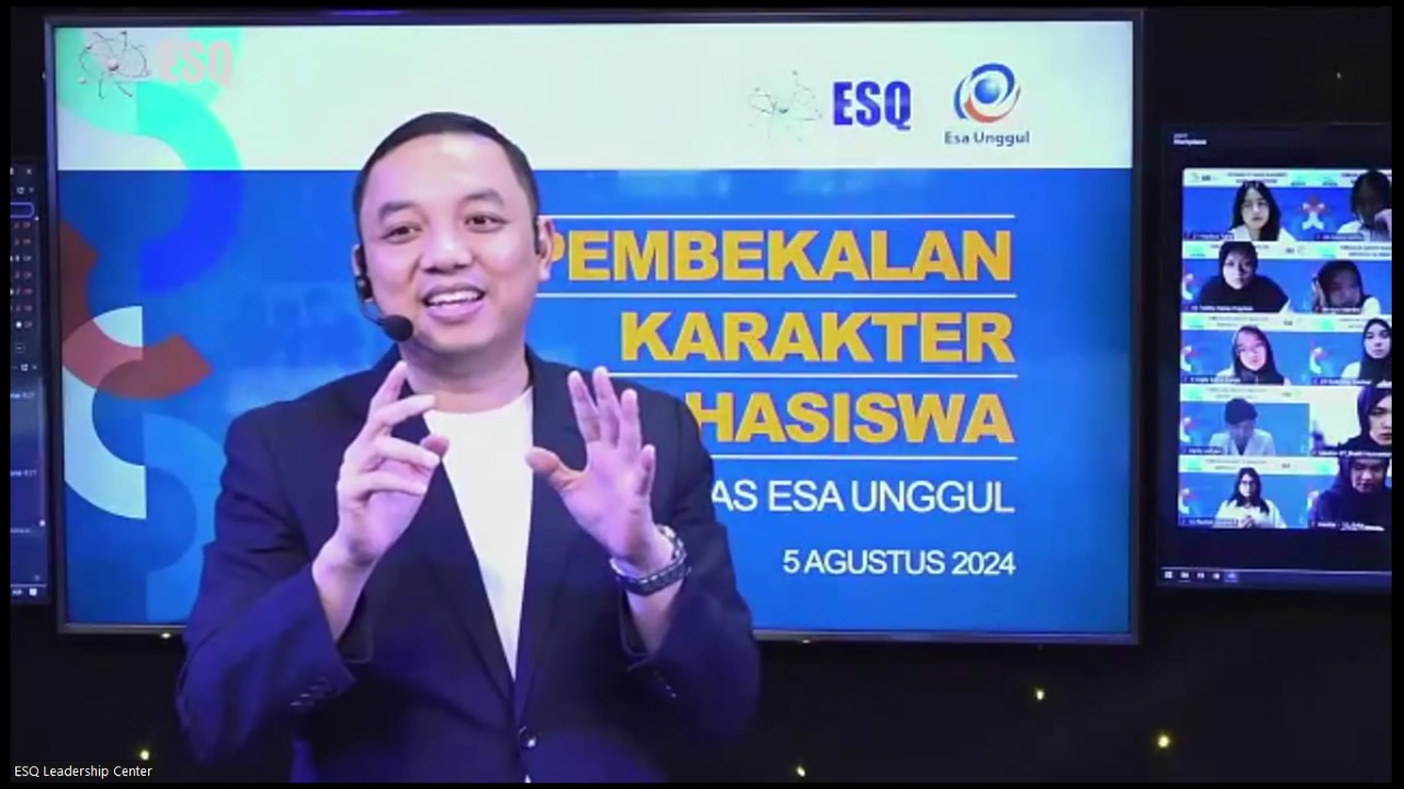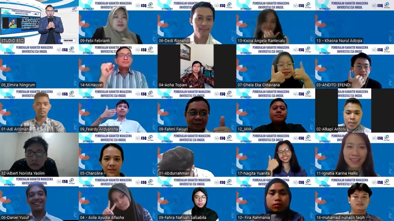 ESQNews.id, JAKARTA - Telah berlangsung pelatihan Pembekalan Karakter Mahasiswa Universitas Esa Unggul pada tanggal 26 Agustus 2024 (batch 3) dan tanggal 22 September 2024 (batch 4) yang digelar secara Online via Zoom Meeting.