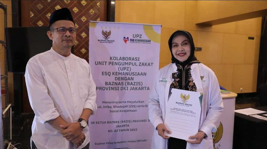 ESQNews.id, JAKARTA - Ketua Badan Amil Zakat Nasional atau Baznas (Bazis) Provinsi DKI Jakarta Akhmad H. Abu Bakar telah sepakat dan memberikan SK dengan Nomor 35 tahun 2020 tentang pembentukan Unit Pengumpul Zakat (UPZ) Lembaga ESQ Kemanusiaan.