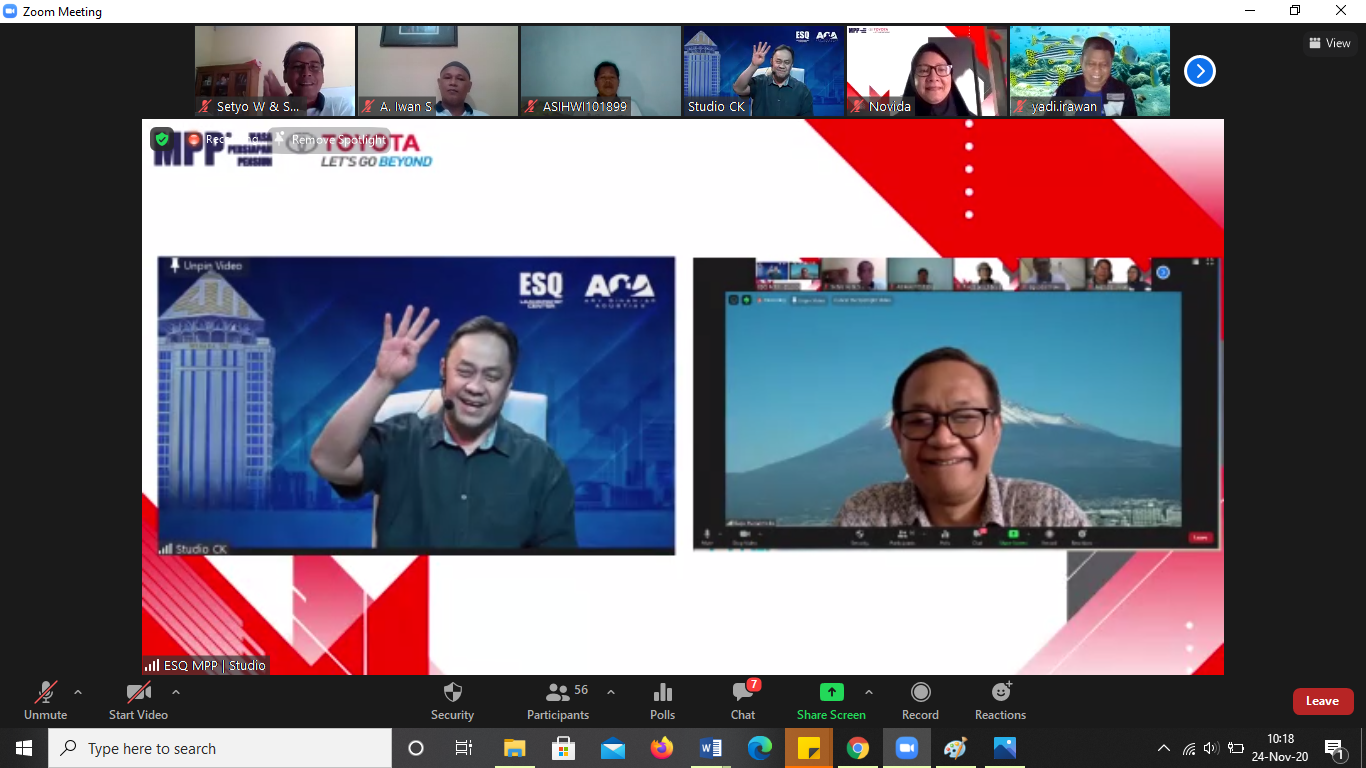 ESQNews.id, JAKARTA - Toyota Astra Motor (TAM) mengikuti Program dari ESQ Masa Persiapan Pensiun (MPP) selama 3 hari pada Selasa-Kamis (24-26/11/2020) by Zoom Meeting, bersama Dr. (H.C) Ary Ginanjar Agustian (CEO ESQ Group) dan dipandu oleh para pakarnya.