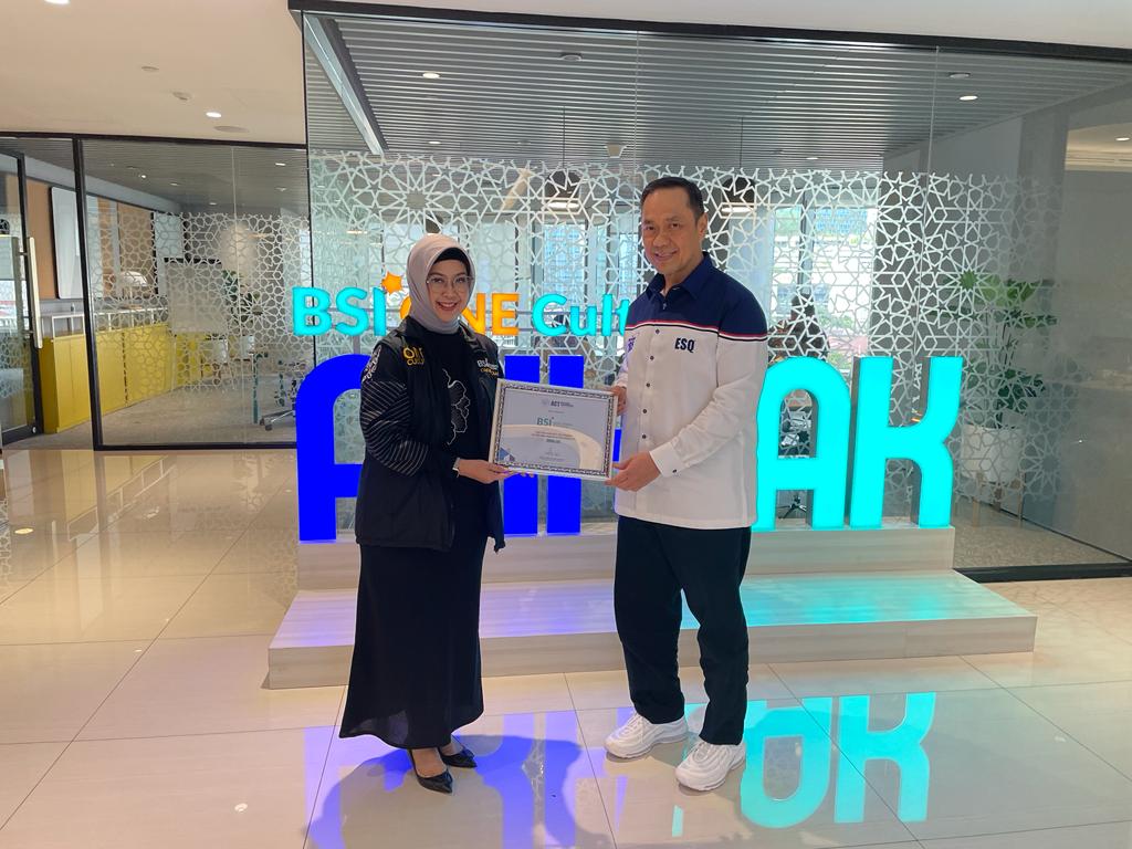 ESQNews.id, JAKARTA - ESQ/Accelerated Culture Transformation (ACT) Consulting International memberikan penghargaan "The Highest Increment in the Implementation Index of AKHLAK" atau pertumbuhan yang signifikan dalam implementasi core values AKHLAK kepada Bank Syariah Indonesia Tbk (BSI).