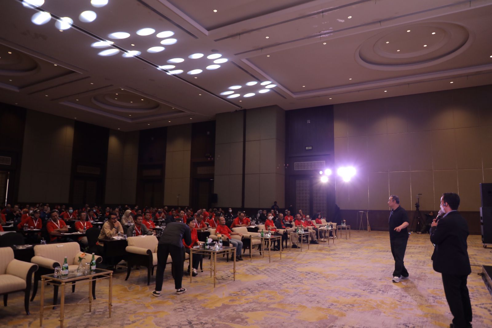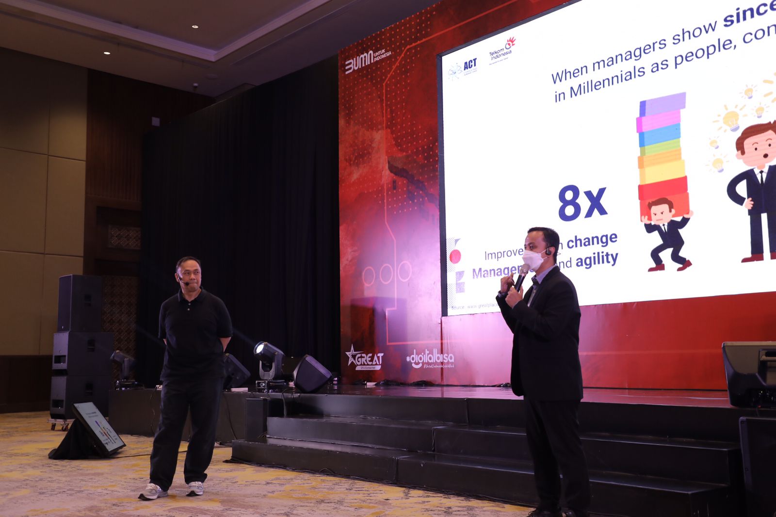 seminar. Insan Telkom Indonesia terlihat ikuti irama, wajanya nampakkan ekspresi