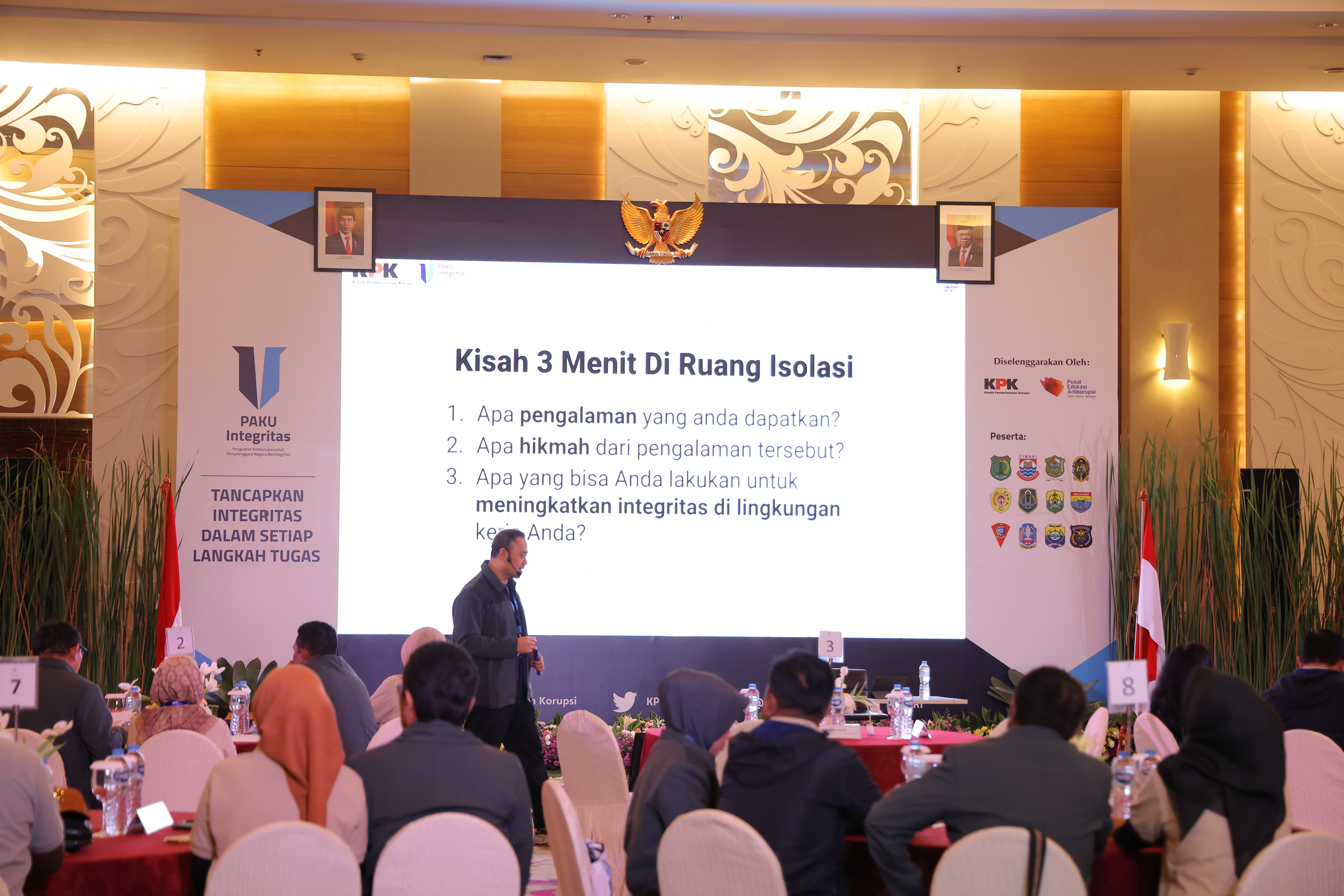 Itulah alasan Ary Ginanjar bersama narasumber lain diundang dalam PAKU Integritas ini. Namun, sebelum Ary dan narasumber lainnya paparkan materi. Di awal sesi ada sambutan terlebih dahulu dari Direktur Pendidikan dan Pelatihan Antikorupsi KPK Dian Novianthi, Deputi Pendidikan & Peran Serta Masyarakat Komisi Pemberantasan Korupsi Wawan Wardiana.
