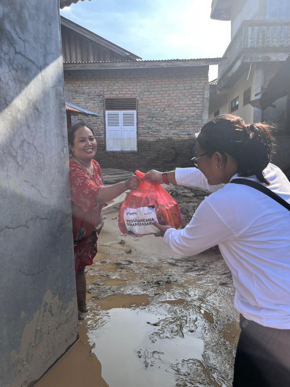 Paket tersebut berisi kebutuhan mendesak seperti Beras, Telur, Mie Instan, Biskuit, serta Perlengkapan Mandi dan Sabun Cuci.