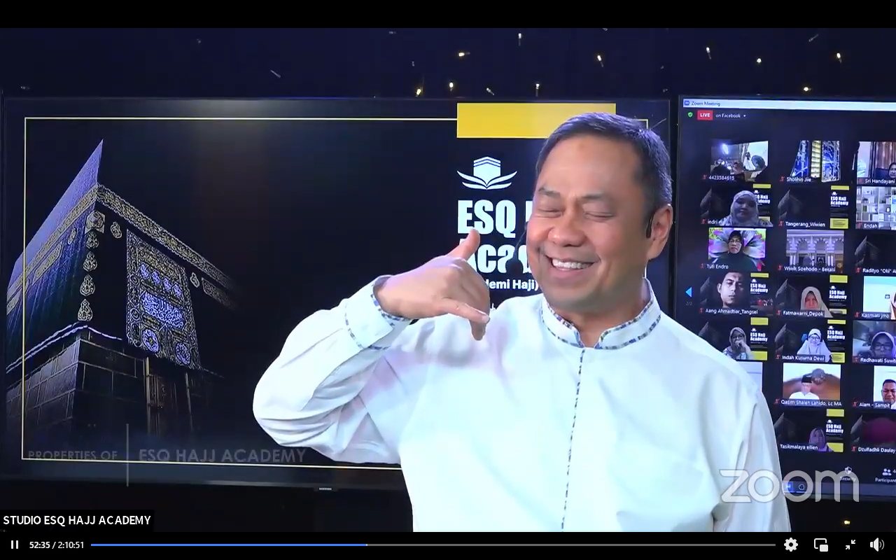 “Ilmu haji adalah ilmu yang tertinggi. Ilmu yang membuat orang bahagia dan sukses. Namun sayang banyak orang yang tidak tahu akan hal ini,” kata Ary Ginanjar Agustian dari Studio lantai 23 Menara 165.