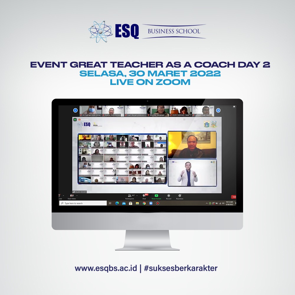 ESQNews.id, JAKARTA - Pada hari Rabu (30/03) ESQ Business School telah menyelenggarakan kegiatan "Great Teacher as a Coach" untuk hari kedua, setelah sebelumnya diselenggarakan pada hari Selasa (29/03).