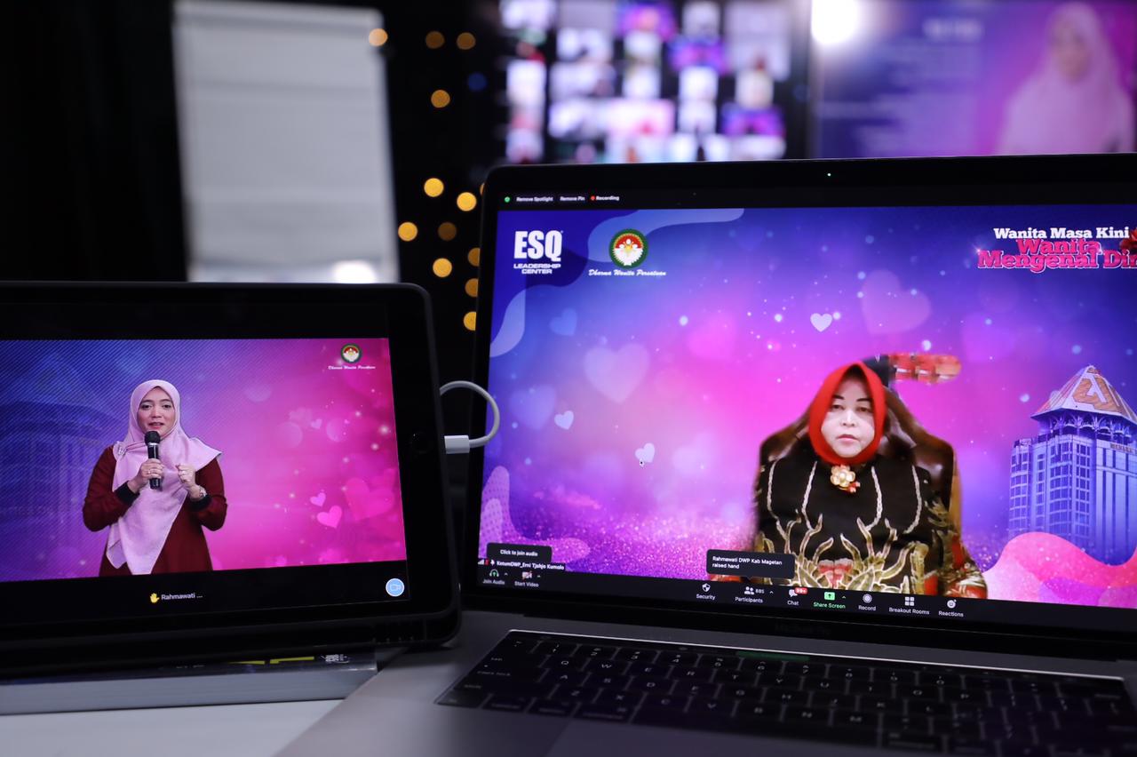 ESQNews.id, JAKARTA - dr. Erni Guntarti Tjahjo Kumolo, Ketua Umum DWP (Dharma Wanita Persatuan) ikutserta dalam webinar dengan tajuk "WANITA MASA KINI, WANITA MENGENAL DIRI", bersama Dr. (H.C) Ary Ginanjar (Founder ESQ Group) dan Coach Nia Fiani (trainer ESQ) pada Sabtu (17/4/2021). Dihadiri oleh 3,473 wanita dari seluruh Indonesia bahkan mancanegara seperti Malaysia, San Fransisco, Dhaka, Eropa, Abu Dhabi, Singapura, dan Turki.