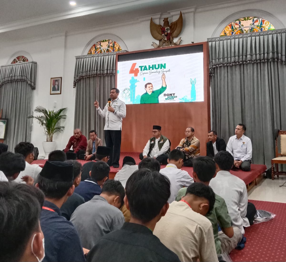 Sanlat tersebut diisi oleh Training for Kids & Teens dari ESQ. Ada ratusan peserta yang hadir. Mereka berasal dari 47 sekolah (tingkat SMP, SMA, SMK, MA) dan para ASN Pemerintah Kabupaten Sumedang.