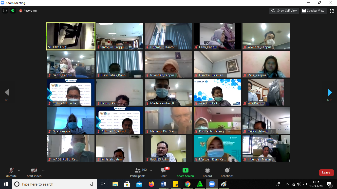 Sekitar 390 orang dari portizen Pelindo III menjawab saklar pada kolom chat zoom meeting.