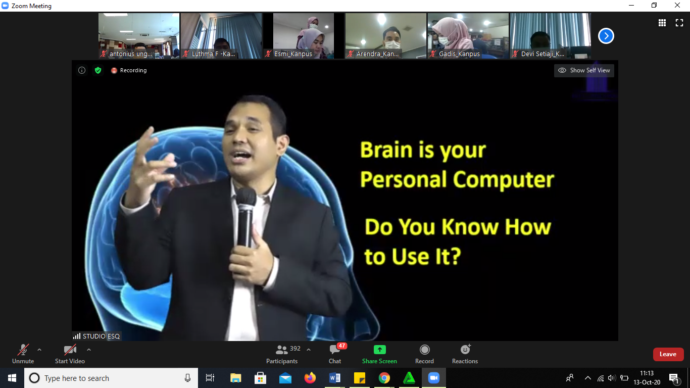 “Kalau manusia itu harus temukan brain (otaknya), yang bisa menentukan sukses atau tidak. Jangan-jangan banyak orang yang cerdas namun dia tidak bisa mengaplikasikan di lingkungan sekitarnya.”