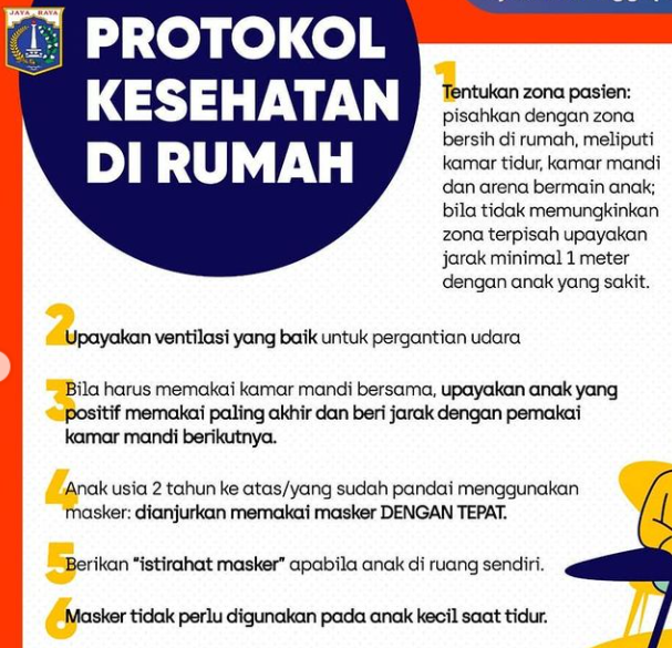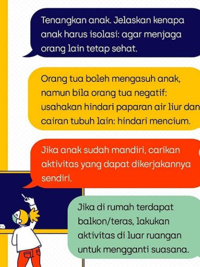 Jika anak diperbolehkan isolasi mandiri, berikut pedoman isolasi mandiri pada anak yang bisa orang tua lakukan menurut Nina Dwi Putri yakni (FKUI/RSCM):