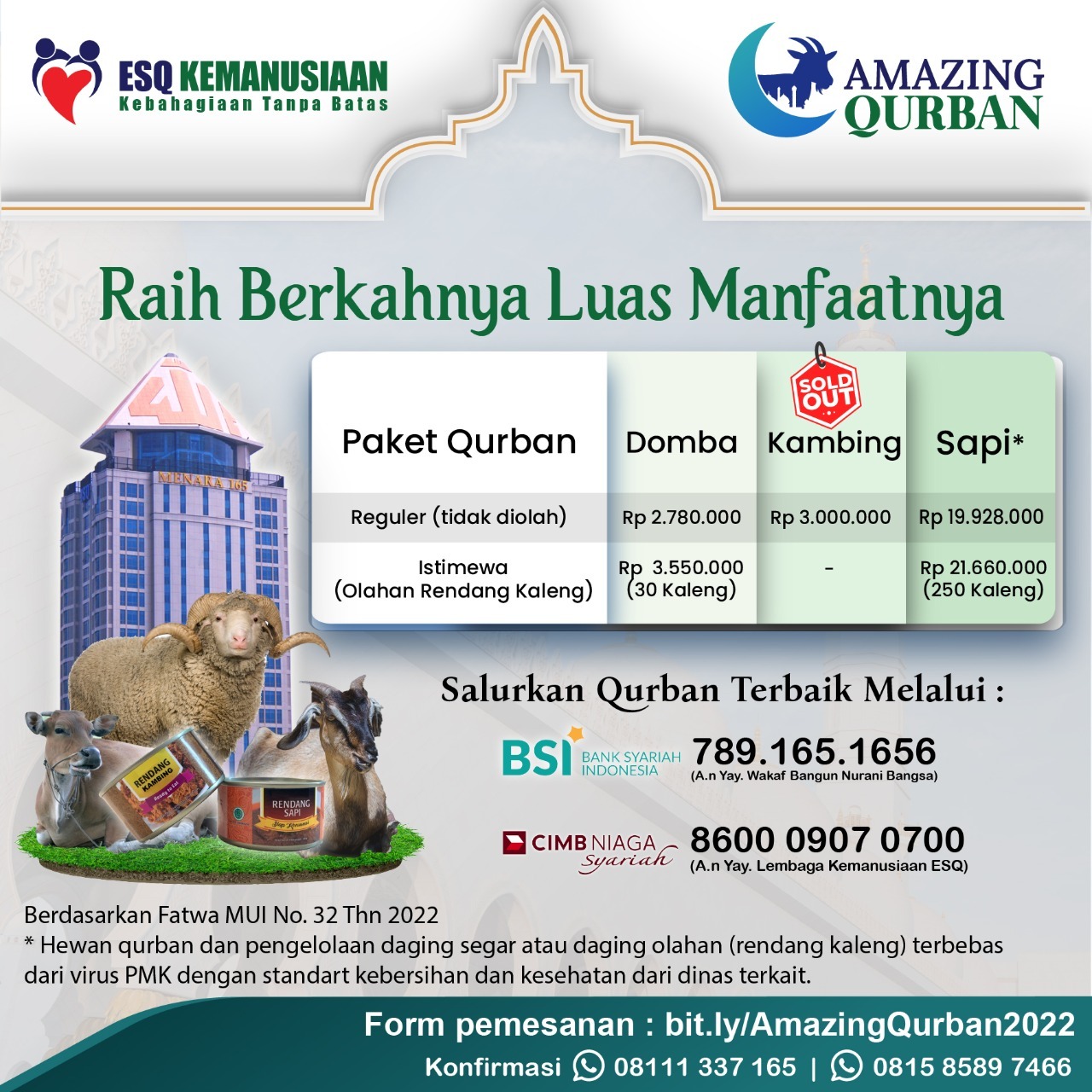 Selain menawarkan paket hewan Qurban reguler (tidak diolah)