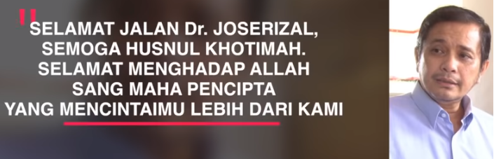 Almarhum dr. Joserizal sosok dokter yang mendedikasikan hidupnya untuk memperjuangkan kemanusiaan tanpa memandang bulu, latar belakang, ras, bahkan agama. Bukannya tak kenal lelah, beliau sangat mengenal lelah namun enggan tunduk kepada rasa lelahnya.