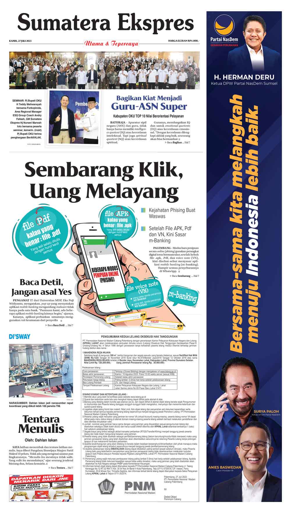 Seminar ditujukkan untuk para ASN dan guru di Kabupaten OKU. Harapannya, mereka bisa mendapat pencerahan,” kata Pj. Bupati.
