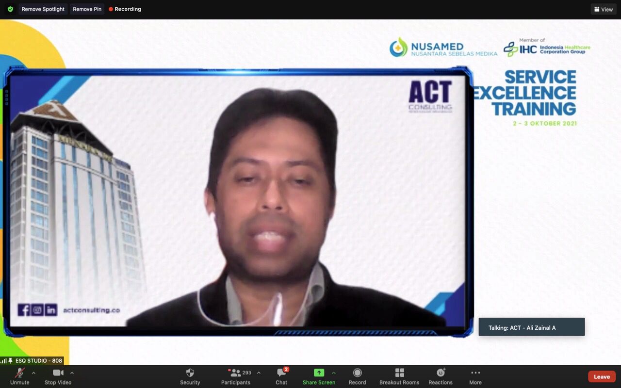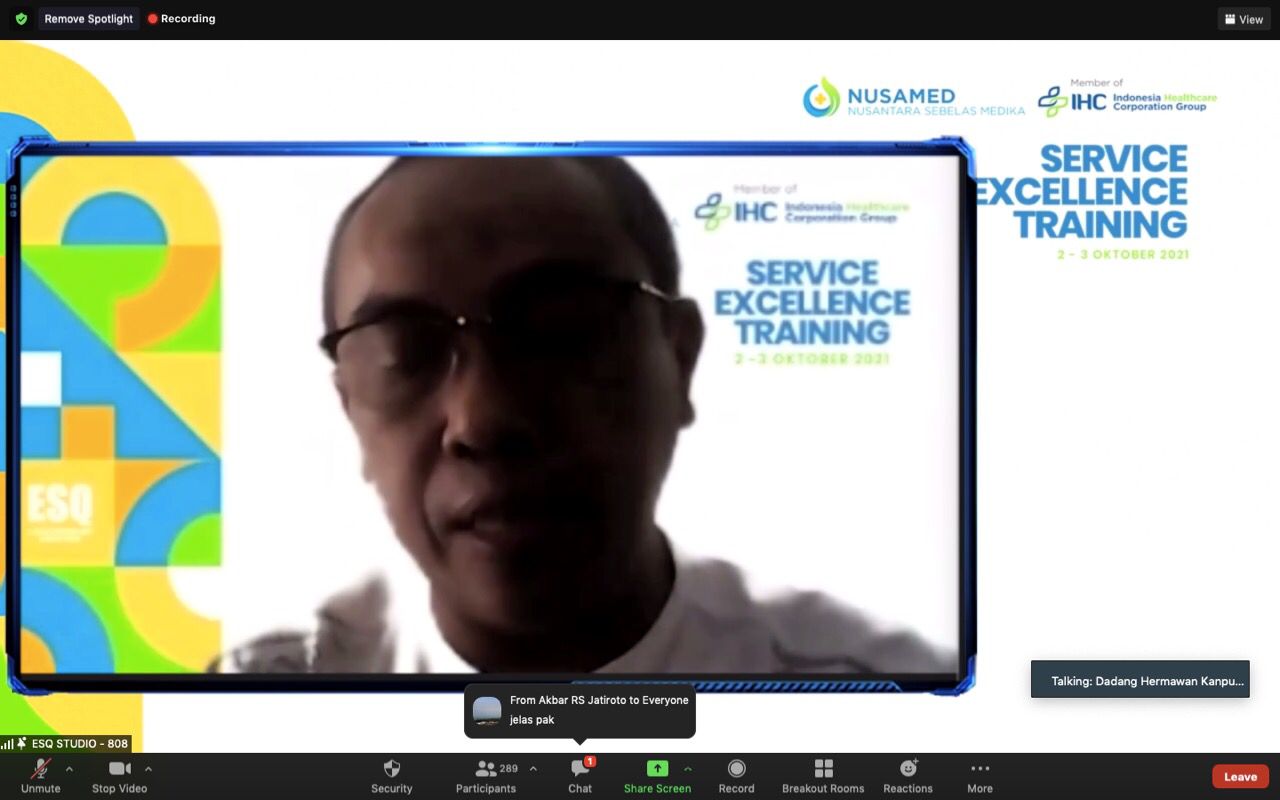 ESQNews.id, JAKARTA – PT Nusantara Sebelas Medika (NSM/Nusamed) mengikutsertakan 289 pimpinan dan karyawannya dalam Training ESQ Service Excellence Batch 2. Pelatihan online ini digelar selama 2 hari pada Sabtu-Minggu (2-3/10/2021) via Zoom Meeting.