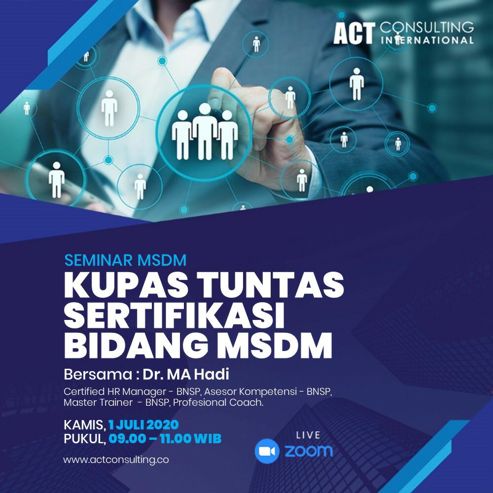 Oleh karenanya, ESQ akan gelar SEMINAR MSDM "KUPAS TUNTAS SERTIFIKASI BIDANG MSDM" bersama Dr. MA Hadi (Certified HR Manager - BNSP, Asesor kompetensi BNSP, Master Trainer BNSP, Profesional coach).