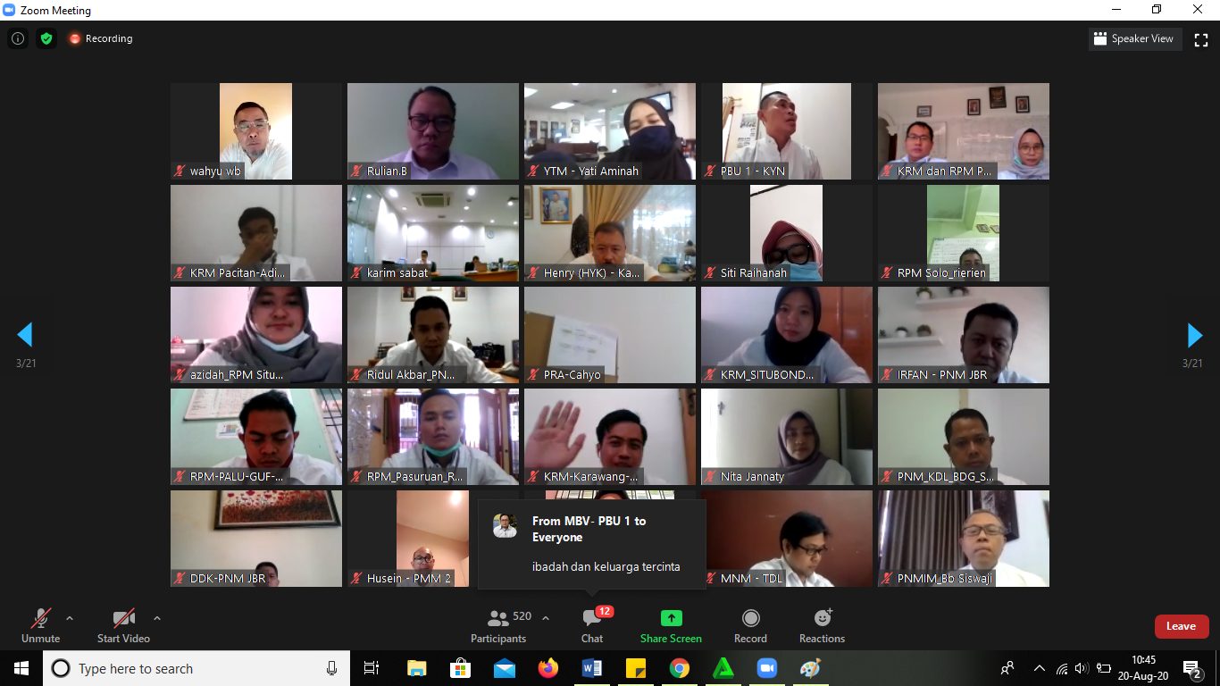 “Anda tidak bahagia, mengeluh di PNM. Padahal dulu gak pernah kerja di PNM. Butuh proses masuk ke PNM. Tapi setelah masuk, Anda lupa bersyukur. Jadi happiness dulu baru Anda bisa maju berkembang,” jawab Ary.