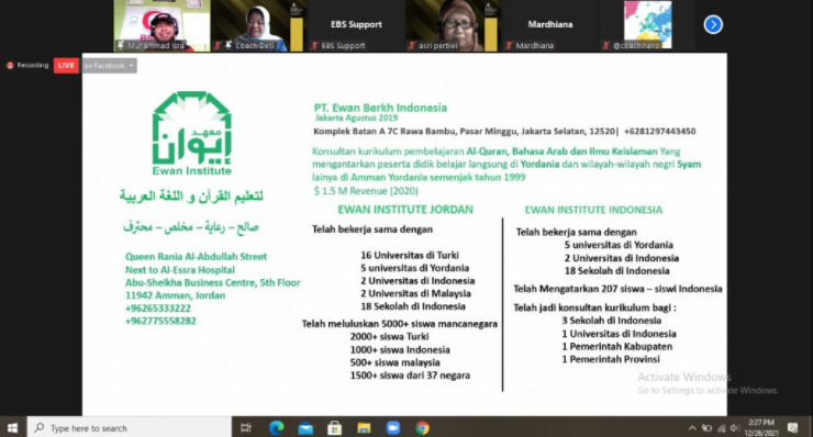 Ewan Institute sendiri adalah konsultan pembelajaran Al-Quran, Bahasa Arab, dan ilmu keislaman yang mengantarkan peserta didik belajar langsung di Yordania dan wilayah-wilayah negeri Syam lainnya di Amman Yordania sejak tahun 1999.