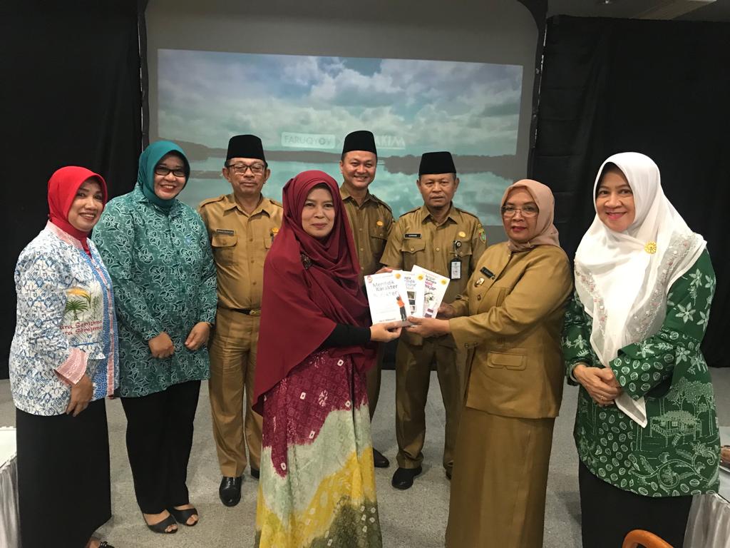 Penyerahan buku Parenting oleh Trainer ESQ LC, Ida S Widayanti kepada Wakil Bupati Musi Rawas, Suwarti di Gedung Bagas Raya Lubuk Linggau, Selasa (3/9).