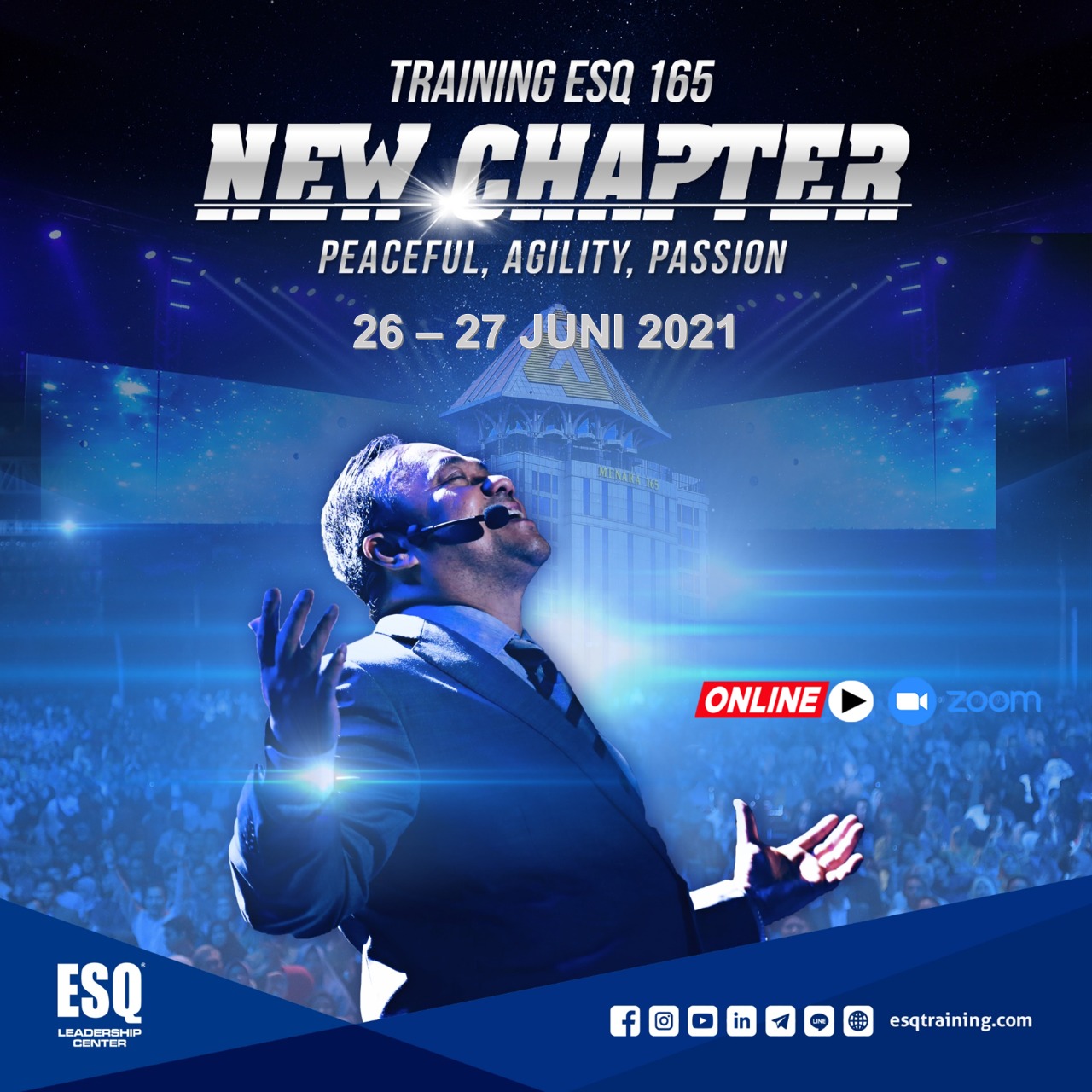 Training itu dibawakan langsung oleh Founder ESQ Group, Dr. (H.C) Ary Ginanjar Agustian. Sebelum pandemic, acara digelar di ruangan yang besar, tepatnya di Menara 165. Namun, itu bukan menjadi hambatan, tim ESQ tetap menggelar eventnya secara online.