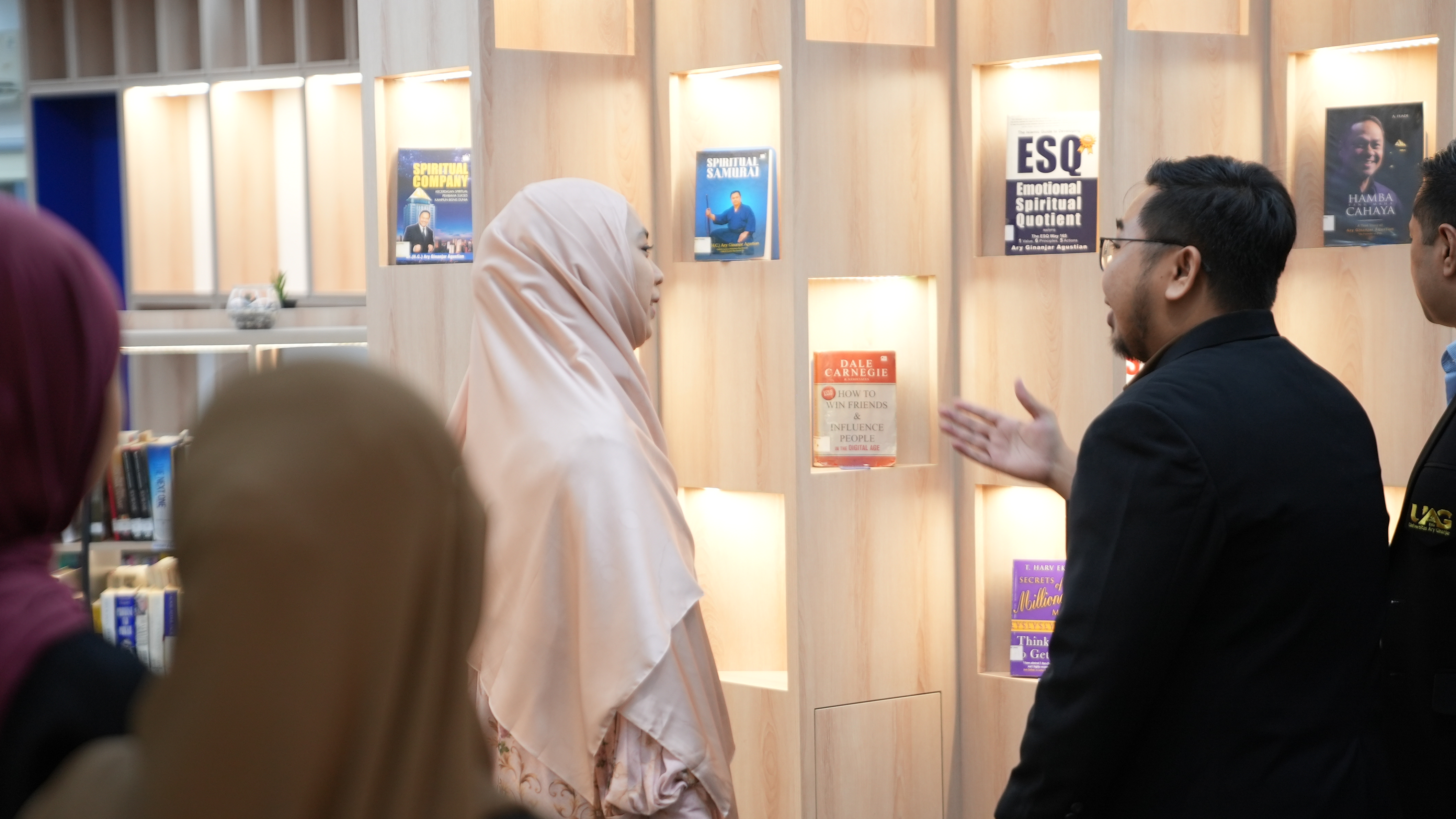 Saat berkunjung ke perpustakaan UAG University - ESQ Business School yang baru, Oki Setiana Dewi sangat terkesan dengan manuskrip buku ESQ yang jadi bukti sejarah lahirnya buku ESQ yang sampai saat ini sudah terjual lebih dari 2,5 juta copy.