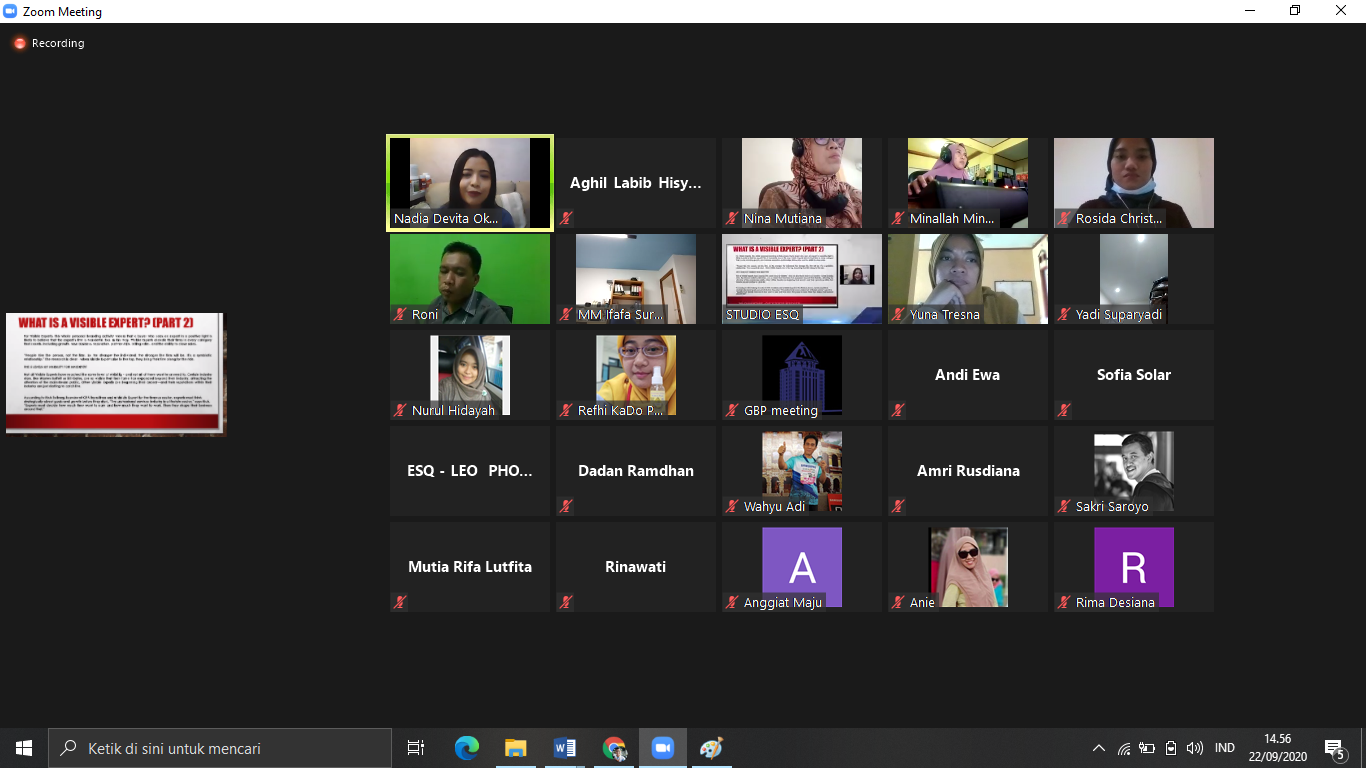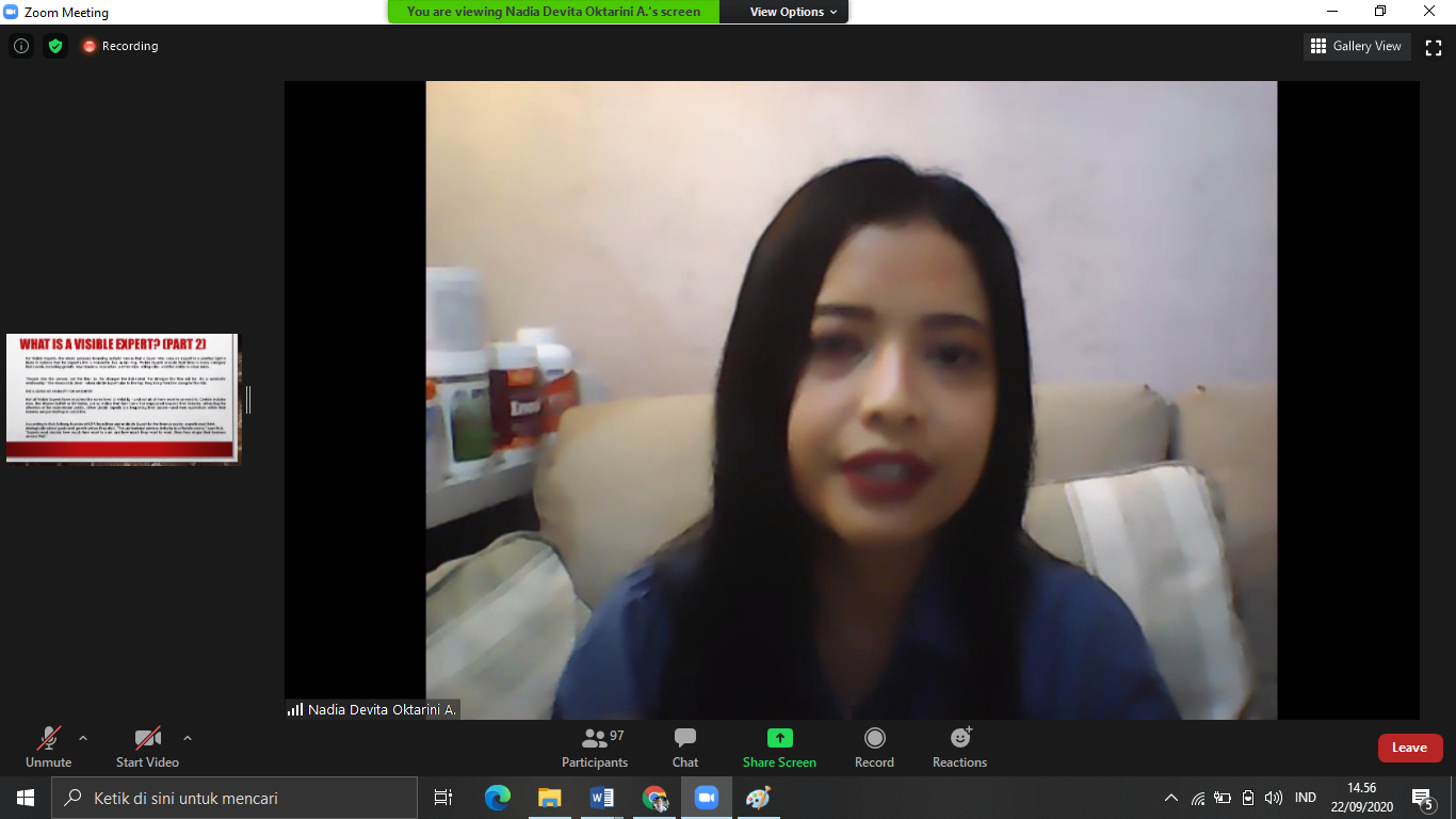 Ia memaparkan slidenya satu per satu, para peserta bisa melihatnya dengan jelas dan seksama. Dalam slidenya, Nadia menjelaskan bahwa ada 5 level atau tingkatan visibilitas seorang ahli.