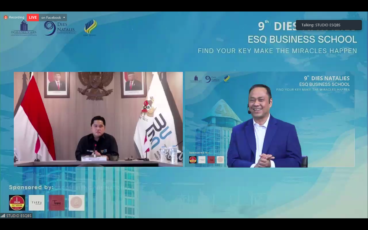 ESQNews.id, JAKARTA - Hari Senin (13/12) ESQ Business School menggelar acara puncak Dies Natalis ke-9 yang bertemakan “Golden Era: Find Your Key, Make The Miracle Happen.” Yang dihelat secara daring melalui aplikasi Zoom Meeting. Lebih dari 250 peserta hadir dalam Zoom Meeting ini. Acara ini juga disiarkan secara langsung di Instagram ESQ Business School dan Facebook Fanpage Ary Ginanjar Agustian.