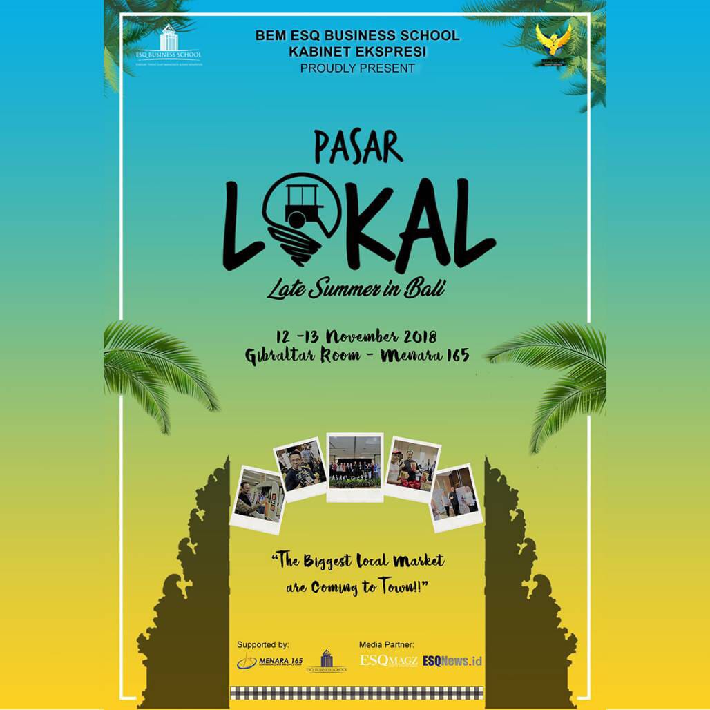 ESQNews.id, JAKARTA - Ada yang berbeda di Menara 165. Begitu masuk lobby MICE di sebelah kiri ada gapura Bali lengkap dengan lengkung janurnya bertuliskan Pasar Lokal. Inilah perhelatan kedua kalinya ESQ Business School. Acara berbentuk bazzar kali ini bertemakan pasar tadisional di kota Bali. Suasana Bali dihadirkan selain dalam bentuk dekorasi juga gamelan yang mengiringi serta para panitia yang menggunakan kain Bali. Berlangsung di ruang Giblartar pada 12-13 November diikuti sekitar 31 stand baik kuliner, fashion, juga motor.