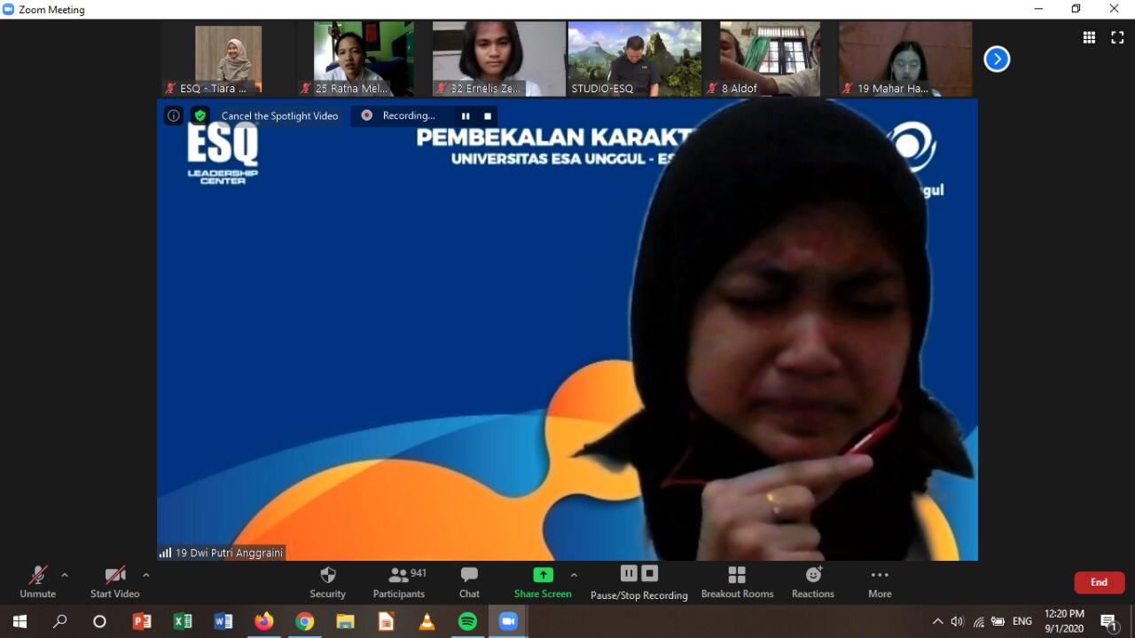 ESQNews.id, JAKARTA - Universitas Esa Unggul adalah salah satu Universitas swasta terbaik di Indonesia. Perguruan tinggi yang menciptakan dan melatih para mahasiswanya agar Smart, Creative, dan Entrepreneurial. Untuk membantu terwujudnya visi dan misi itu, diselenggarakan sebuah pembekalan karakter (training ESQ) untuk 900 mahasiswa baru Universitas Esa Unggul pada Selasa (1/9/2020).